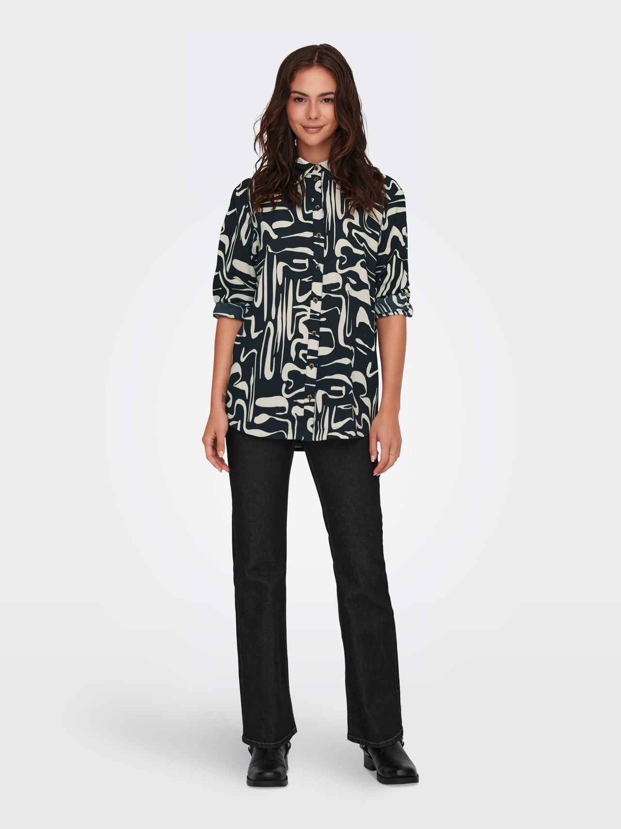 Bringe sanfte Farben und feine Details in deine Garderobe mit einer femininen Bluse, die sich leicht mit zeitlosen Jeans oder einem eleganten Rock kombinieren lässt.