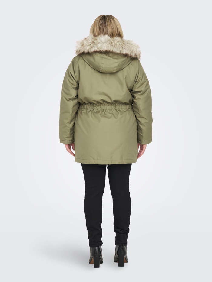 - λαιμόκοψης : Κουκούλα w. Αποσπώμενη άκρη συνθετικής γούνας