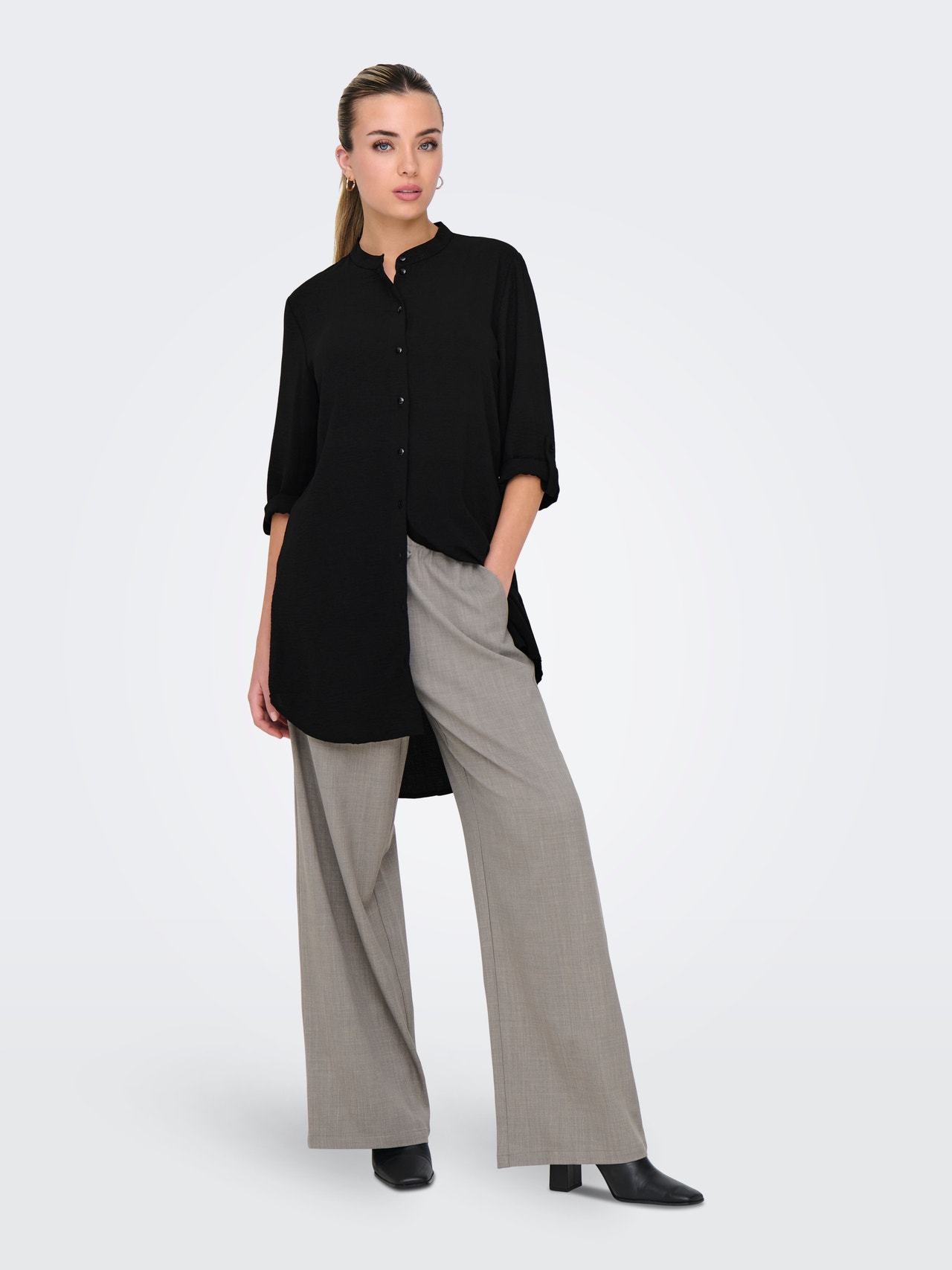 Καμία γκαρνταρόμπα δεν είναι ολοκληρωμένη χωρίς απαλά, διαχρονικά, βασικά στιλ, τέλεια για κάθε περίσταση και εποχή. - Τύπος προϊόντος : Πουκάμισο - λαιμόκοψης : Κινέζικος γιακάς - Μανίκι : Μανίκια 3/4 - Τύπος μανσέτας : Αναδιπλούμενες μανσέτες - Κλείσιμο/fly : Κλείσιμο με κουμπί - Μήκος/μέγεθος : Μακρύ - Επιπλέον λεπτομέρειες : Πιο μακρύ στο πίσω μέρος - Εφαρμοστό : Κανονική εφαρμογή - Σύνθεση προσαρτήματος : Πολυεστέρας