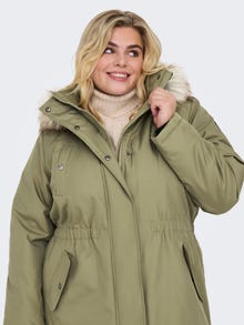 - λαιμόκοψης : Κουκούλα w. Αποσπώμενη άκρη συνθετικής γούνας