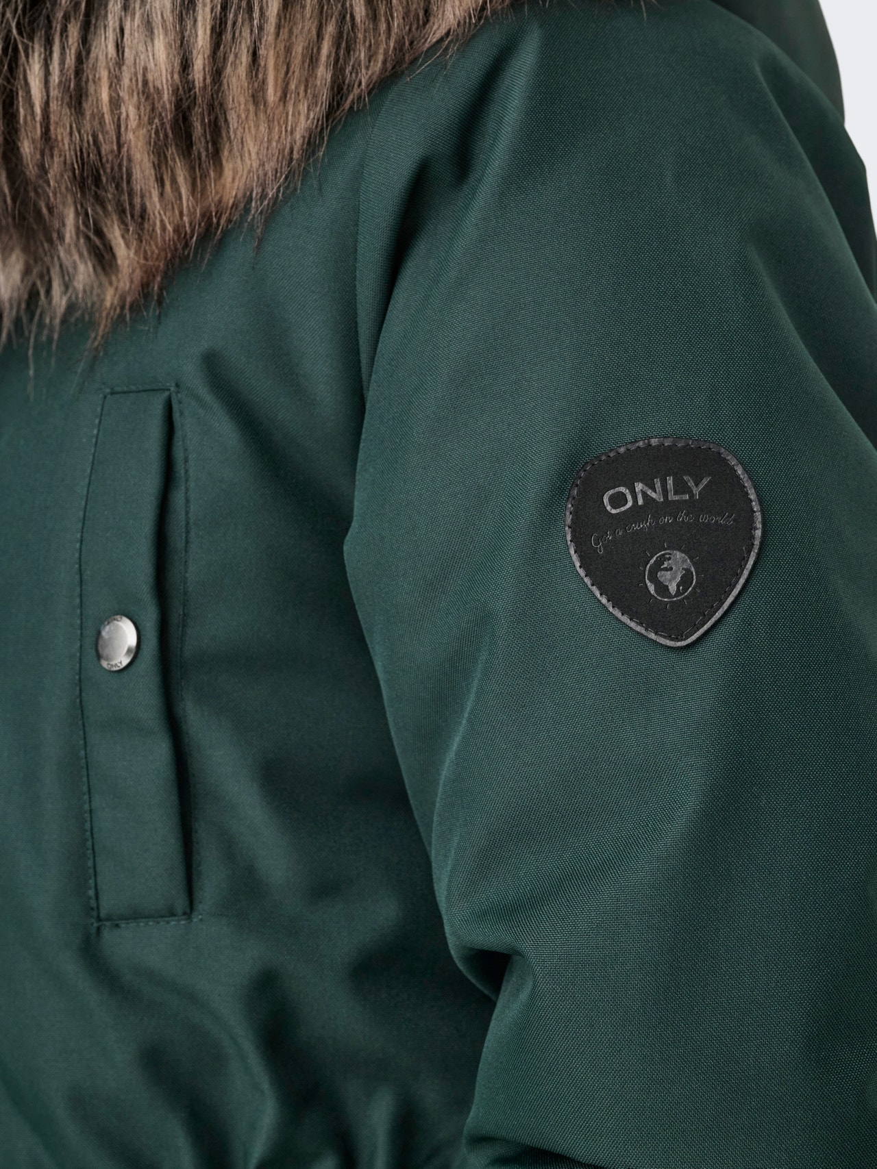 - λαιμόκοψης : Κουκούλα w. Αποσπώμενη άκρη συνθετικής γούνας