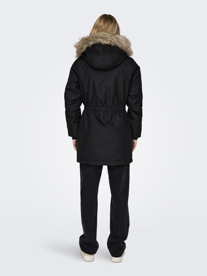 - λαιμόκοψης : Κουκούλα w. Αποσπώμενη άκρη συνθετικής γούνας