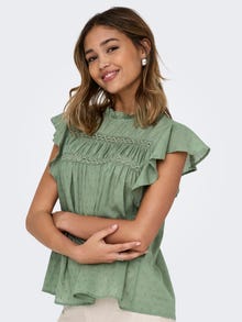 Κάντε τη μετάβαση εύκολη με ανοιξιάτικα και καλοκαιρινά στιλ, τέλεια για την υπέροχη ενδιάμεση σεζόν. - Τύπος προϊόντος : Μπλούζα - λαιμόκοψης : Λαιμόκοψη O - Μανίκι : Κοντά μανίκια - Κλείσιμο/fly : Κλείσιμο με κουμπί - Επιπλέον λεπτομέρειες : Βολάν - Εφαρμοστό : Κανονική εφαρμογή