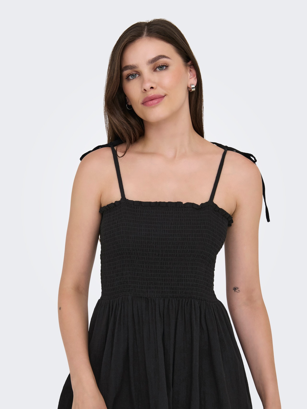 Αναβαθμίστε την γκαρνταρόμπα σας με ένα κομψό φόρεμα και δημιουργήστε μια εντυπωσιακή εμφάνιση που ταιριάζει σε κάθε περίσταση και εποχή. - Τύπος προϊόντος : Φόρεμα - λαιμόκοψης : Καμιζόλα - Μανίκι : Αμάνικο - Τύπος ιμάντα : Ρυθμιζόμενοι ιμάντες ώμου, Στενοί ιμάντες - Επιπλέον λεπτομέρειες : Λεπτομέρεια σφηκοφωλιάς - Εφαρμοστό : Κανονική εφαρμογή