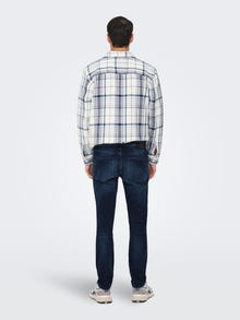 Ένα καλό τζιν είναι απαραίτητο για την γκαρνταρόμπα, κατάλληλο για κάθε περίσταση, συνδυάζοντας άψογα την καθημερινή άνεση με τη διαχρονική μόδα. Το εξαιρετικά ελαστικό denim ύφασμα προσφέρει άνεση επόμενου επιπέδου. - Τύπος προϊόντος : Τζιν με λεπτή εφαρμογή - Κλείσιμο/fly : Κούμπωμα με φερμουάρ fly - Τσέπες : Πίσω τσέπες, Τσέπη για νομίσματα, Μπροστινές τσέπες - Μέση/καβάλος : Low rise - Επιπλέον λεπτομέρειες : Θηλιές ζώνης - Πλύσιμο/φινίρισμα : Μπλε denim με μαύρη βαφή για πιο σκούρο λουλακί τόνο - Εφαρμοστό : Λεπτή εφαρμογή