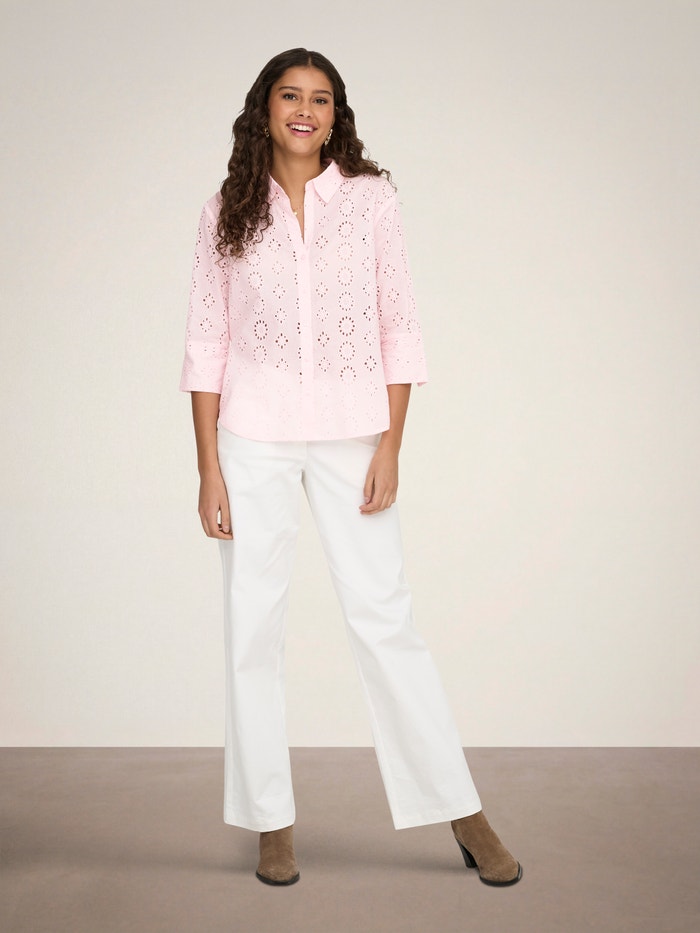Add soft colours and subtle details to your wardrobe with a feminine shirt easy to pair with timeless jeans or a tailored skirt.