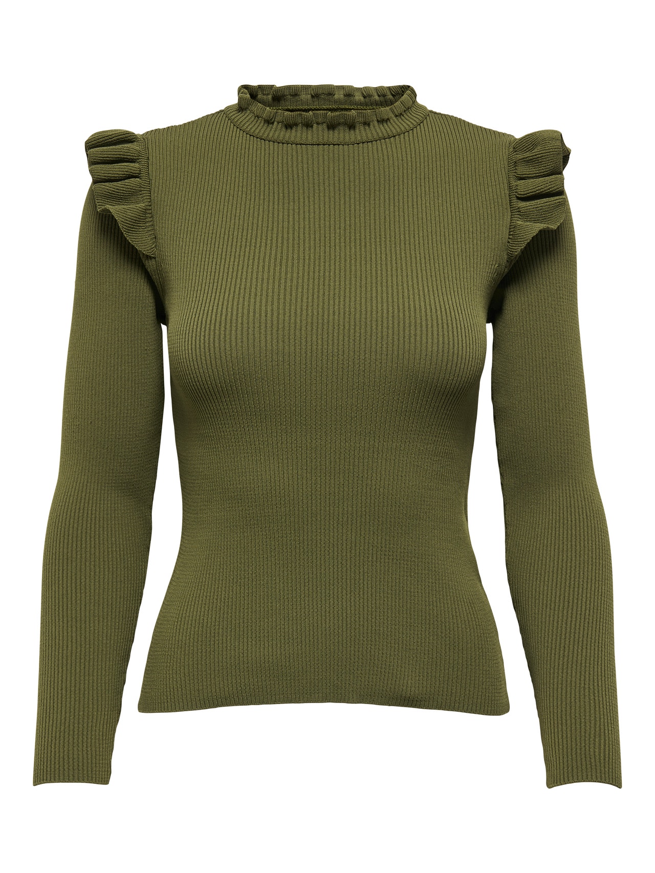 Top off your look with a timeless, feminine knit and add softness and warmth. - Product Type : Knitted pullover - Neck : Round Neck - Sleeve : Long sleeves - Extra details : Ruffles - Fit : Regular Fit