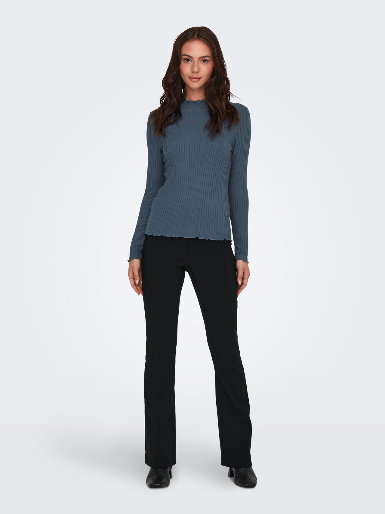 Change your everyday outfit in a second by adding a feminine top for a soft, clean expression. Rib is a type of knitting characterised by its distinct rows and stretchability, creating a comfortable and timeless look. JDY is a full-concept, international fashion brand offering affordable and on-trend products to the fashion-conscious consumer. - Product Type : Top - Neck : High neck - Sleeve : Long sleeves - Extra details : Frills - Fit : Slim Fit