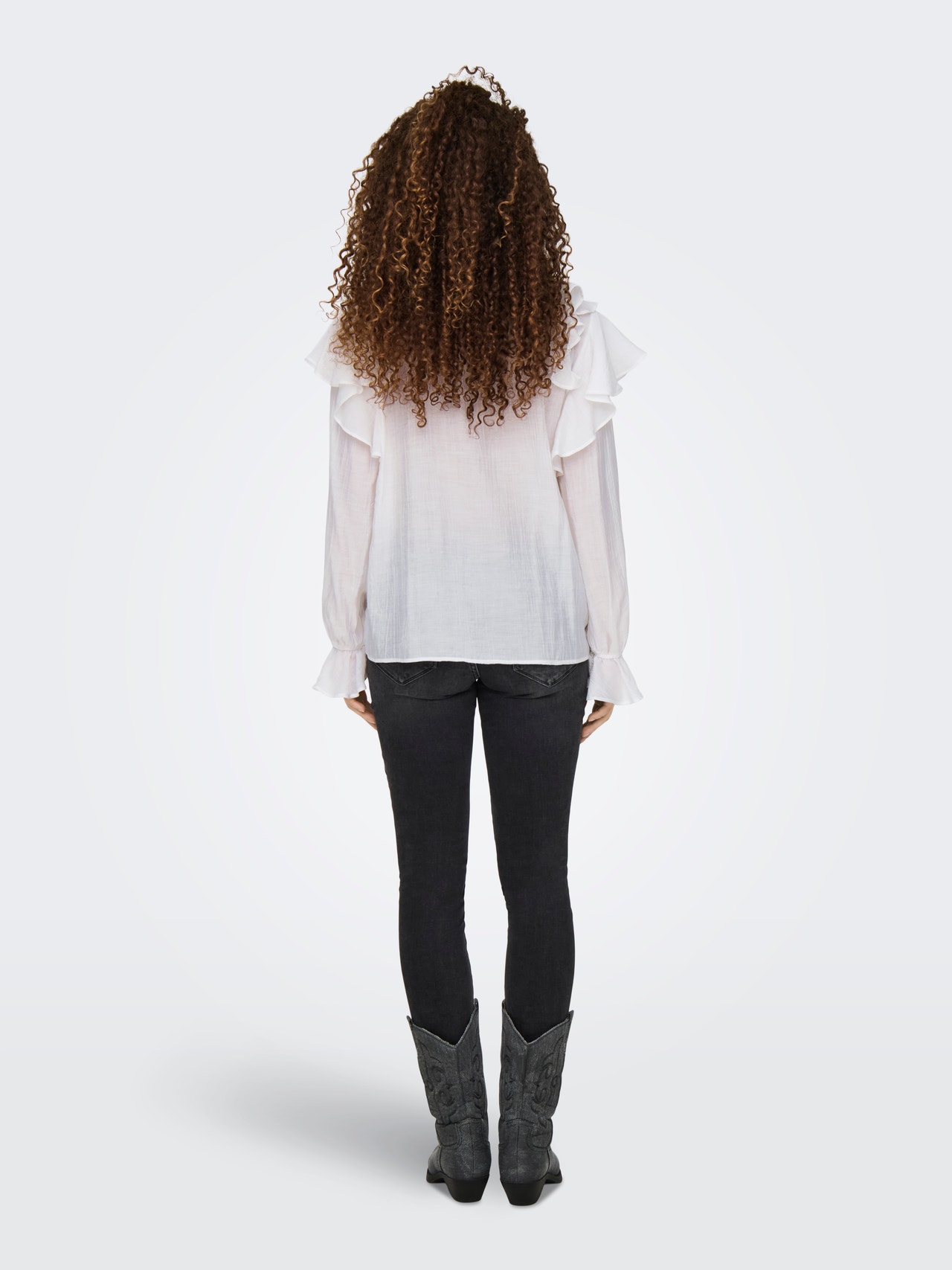 Change your everyday outfit in a second by adding a feminine top for a soft, clean expression.