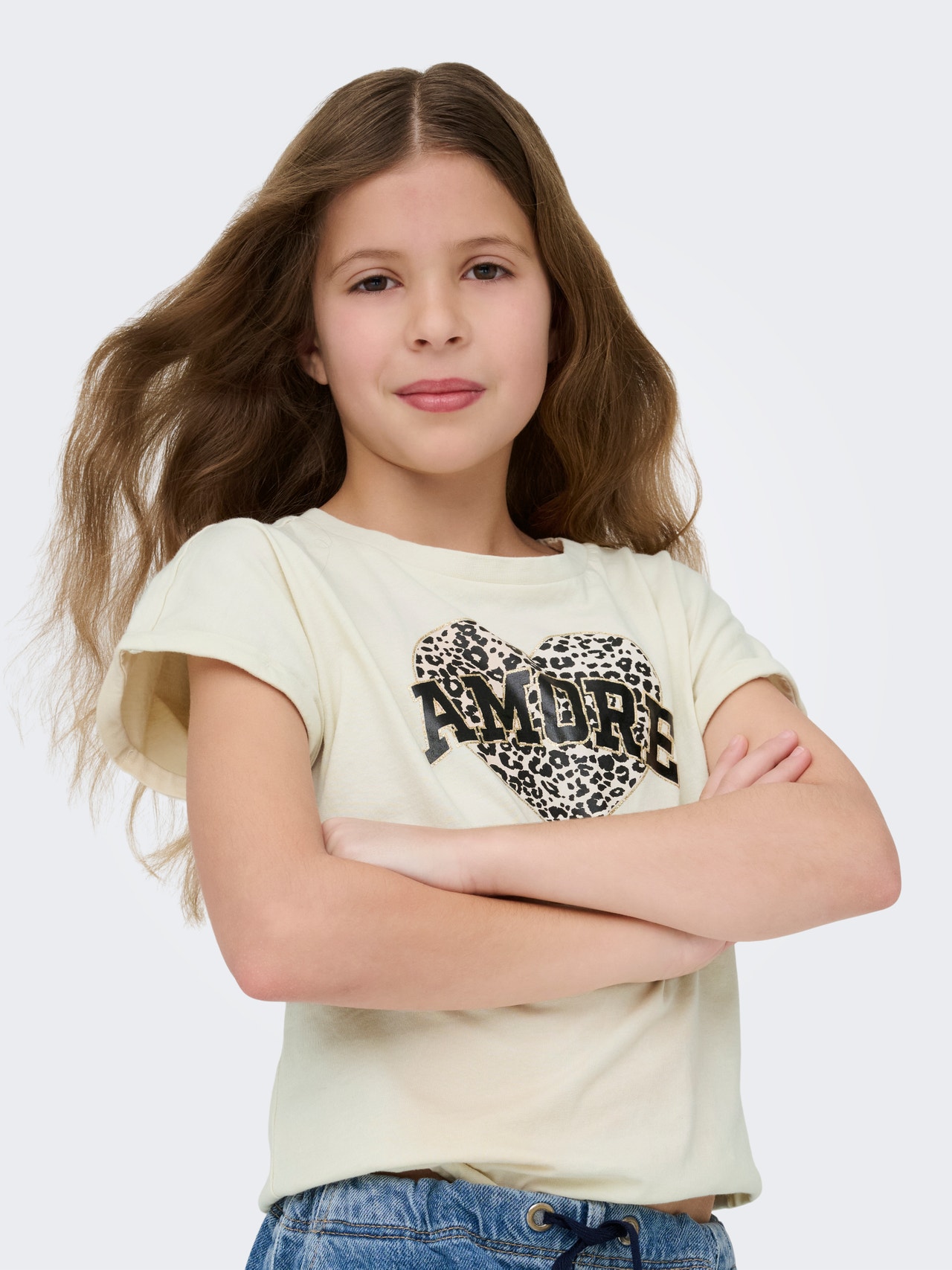 Change your everyday outfit in a second by adding a feminine top for a soft, clean expression.