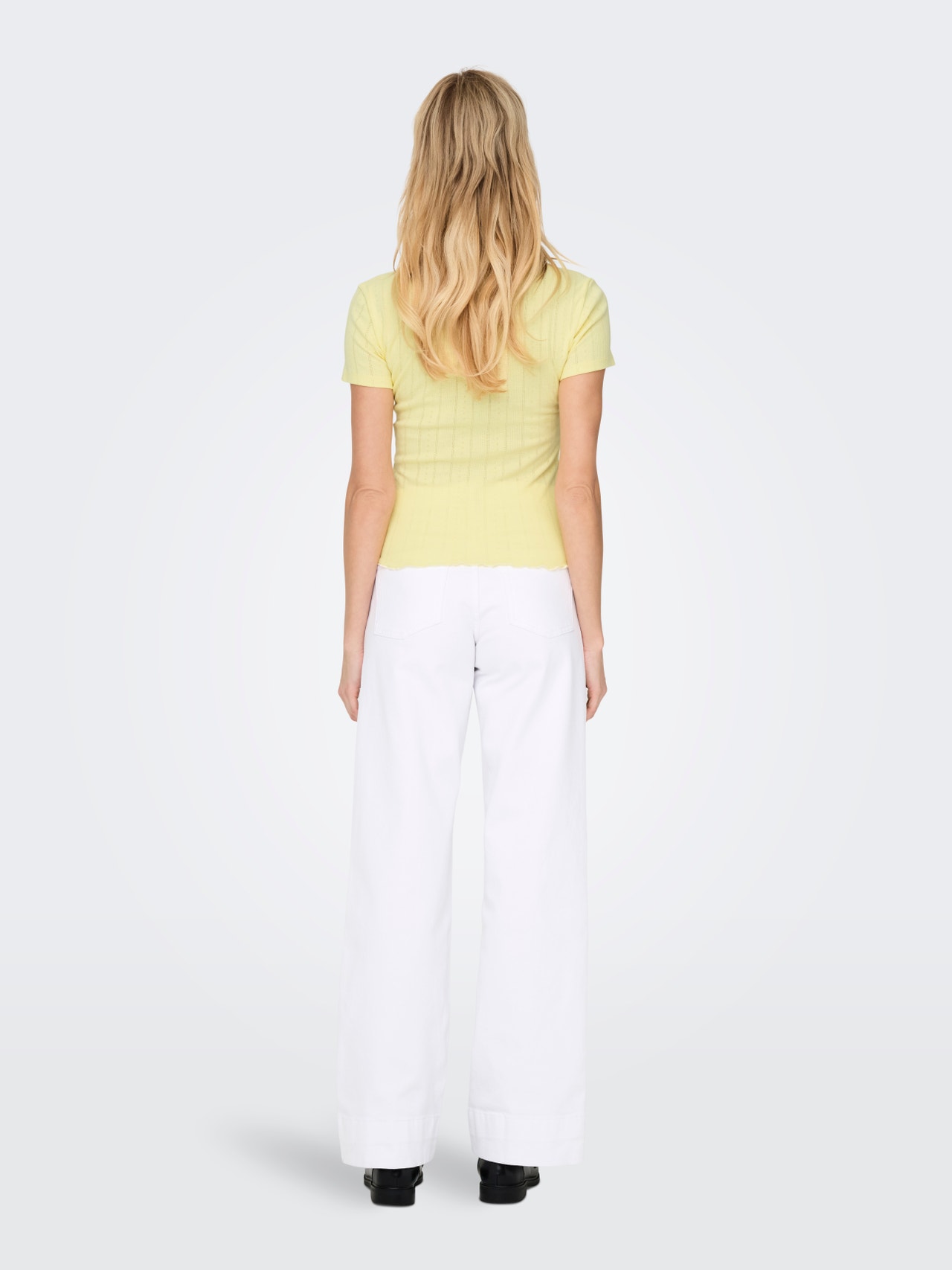 Change your everyday outfit in a second by adding a feminine top for a soft, clean expression.