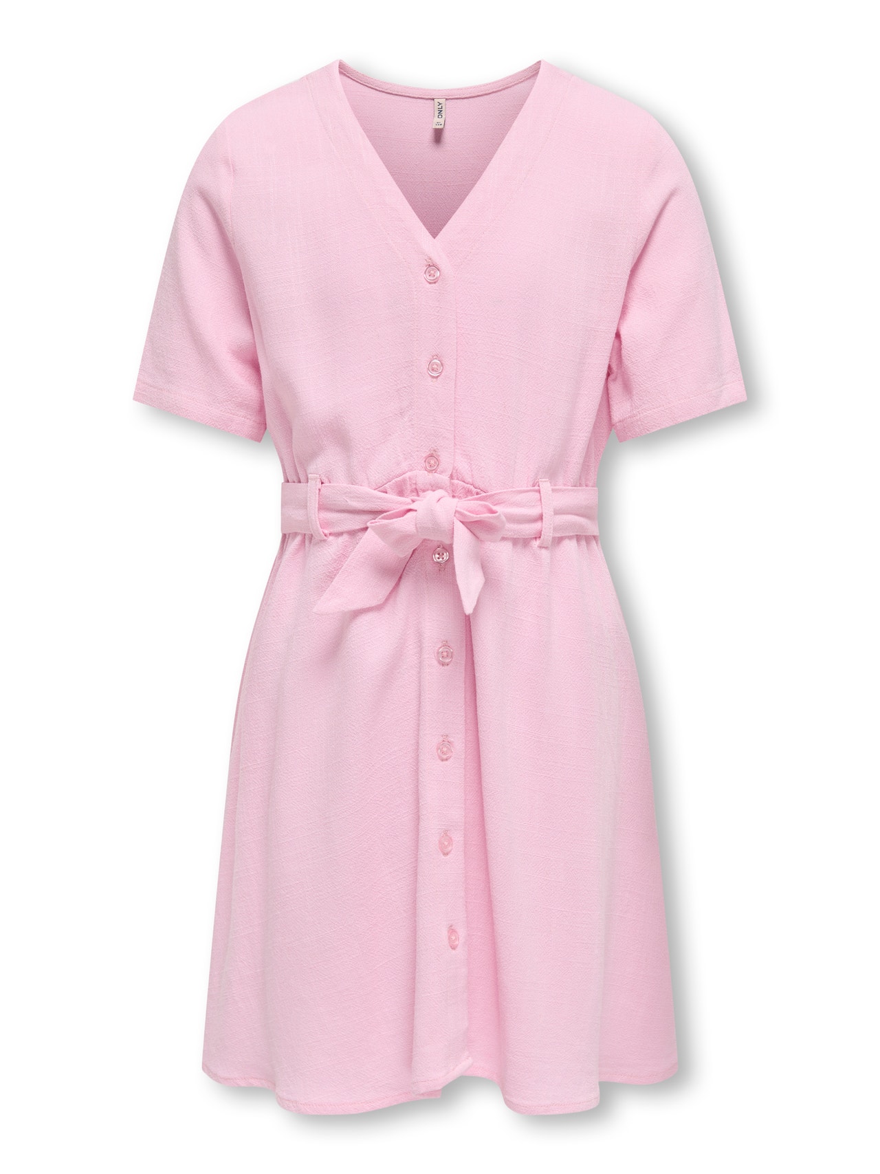 A cute and stylish upgrade with dresses from ONLY GIRLS! Perfect for both everyday wear and special occasions, from colourful casual dresses to pretty party dresses. Pair them with leggings and trainers for a look that combines comfort and personal style. Viscose is a soft and lightweight material with a nice drape and a beautiful silk-looking surface. ONLY GIRLS is for girls who love to express their style with confidence. The collections offer the perfect blend of trendy denim, feminine details, and rock ‘n’ roll-inspired styles. Our clothing is designed to give young fashion lovers the chance to stand out with both everyday looks and festive outfits. - Product Type : Dress - Neck : V-Neck - Sleeve : Short sleeves - Closing : Belt fastening, Button fastening - Extra details : Belt in waist - Fit : Regular Fit - Attention : WARNING! Keep away from fire - Attachment type : Unfixed cord - Attachment length : 14.0 - Attachment comp : Main fabric