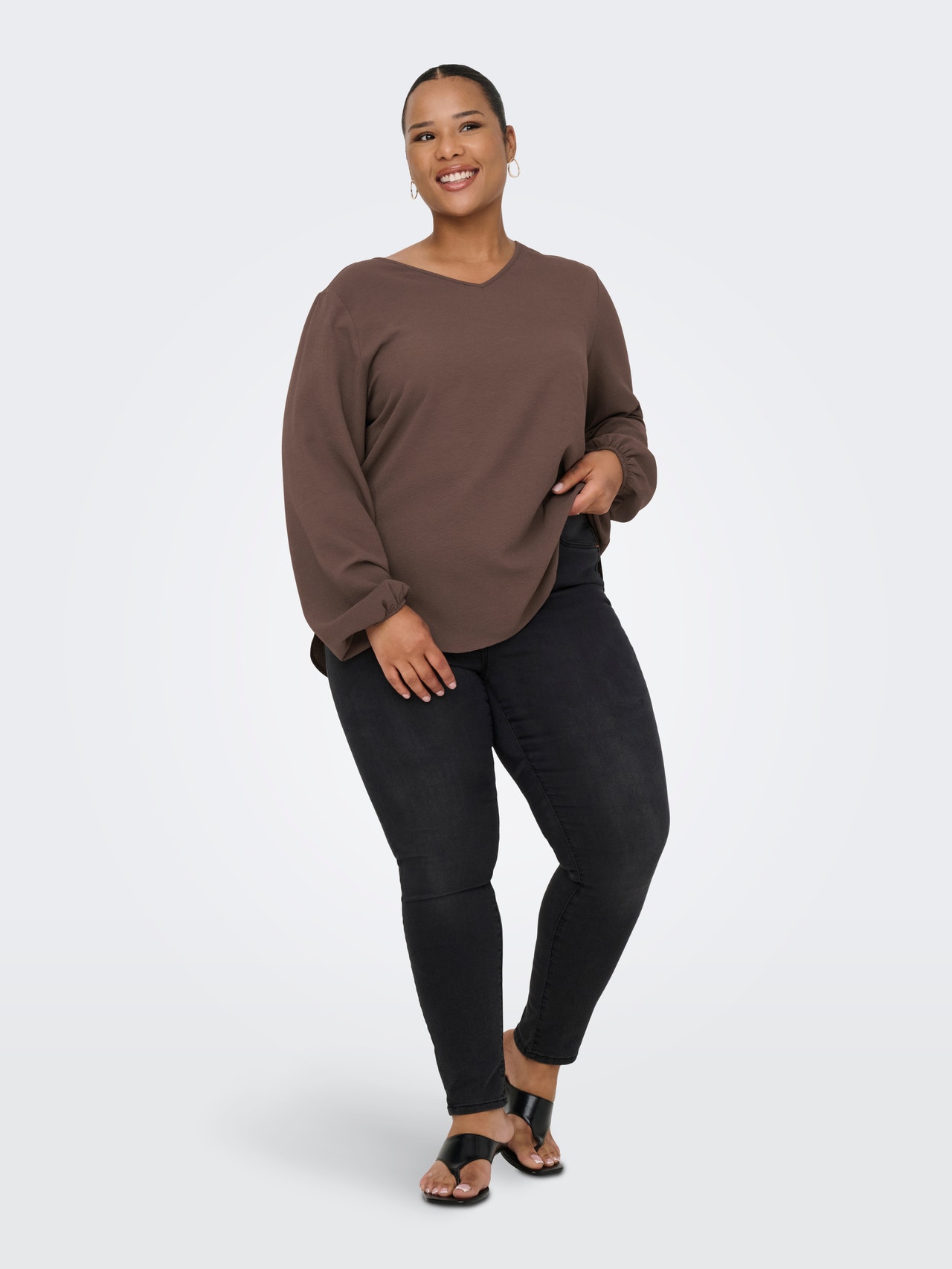 Look your best for school, work, and everyday activities in cool styles that are easy to match with your wardrobe favourites. ONLY CARMAKOMA is for women with curves who love fashion and expressing their personal style with confidence. The collections feature modern denim, flattering fits, and styles for every occasion — from edgy and cool to feminine and classic. Our selection of plus-size clothing is designed to highlight your curves and provide comfort, so every plus-size woman can feel beautiful and confident in her look. - Product Type : Blouse - Neck : V-Neck - Sleeve : Long sleeves - Cuffs : Elasticated cuffs - Fit : Regular Fit
