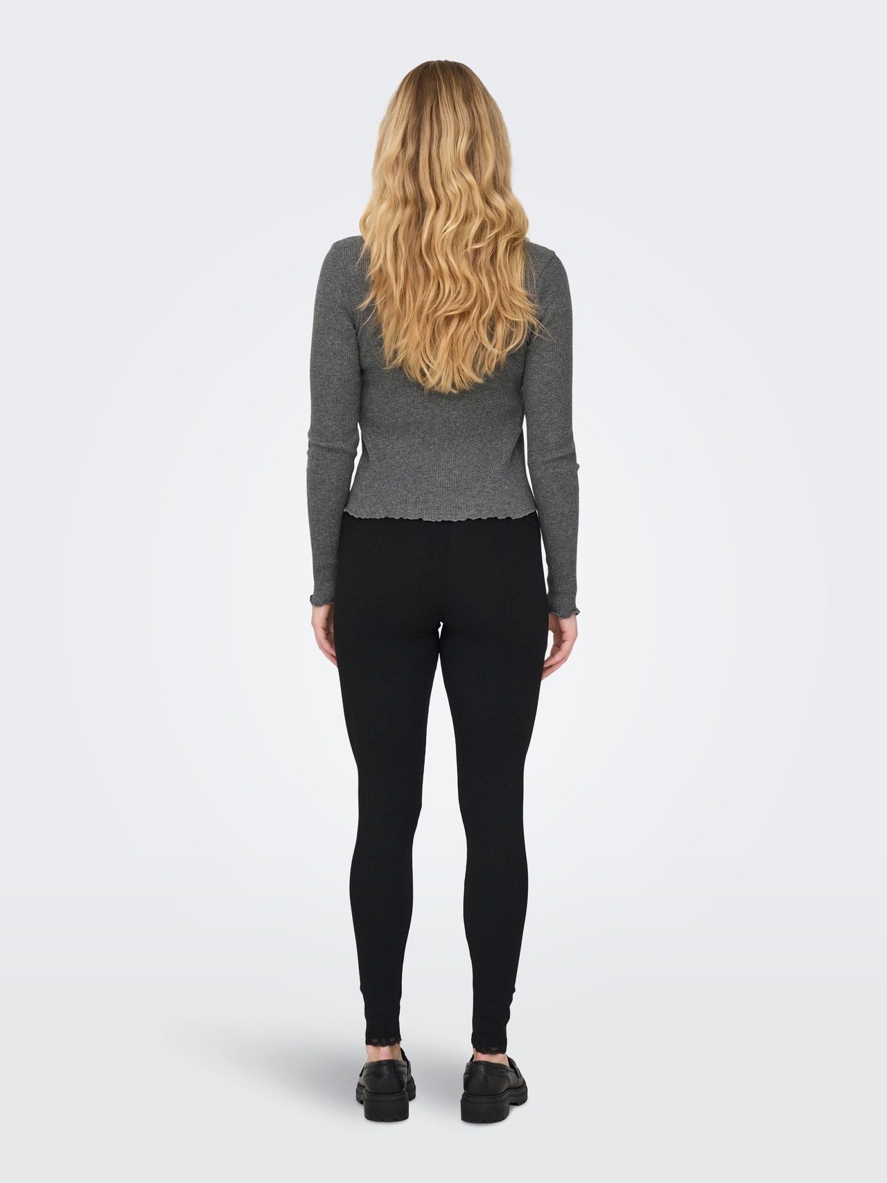 Change your everyday outfit in a second by adding a feminine top for a soft, clean expression.