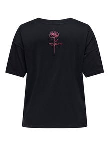 Look your best for school, work, and everyday activities in cool styles that are easy to match with your wardrobe favourites. Cotton is made of natural fibres creating a soft, breathable fabric. ONLY CARMAKOMA is for women with curves who love fashion and expressing their personal style with confidence. The collections feature modern denim, flattering fits, and styles for every occasion — from edgy and cool to feminine and classic. Our selection of plus-size clothing is designed to highlight your curves and provide comfort, so every plus-size woman can feel beautiful and confident in her look. - Product Type : T-shirt - Neck : Round Neck - Sleeve : Short sleeves - Sleeves : Dropped shoulders - Extra details : Printed detail, Rhinestones - Fit : Loose Fit