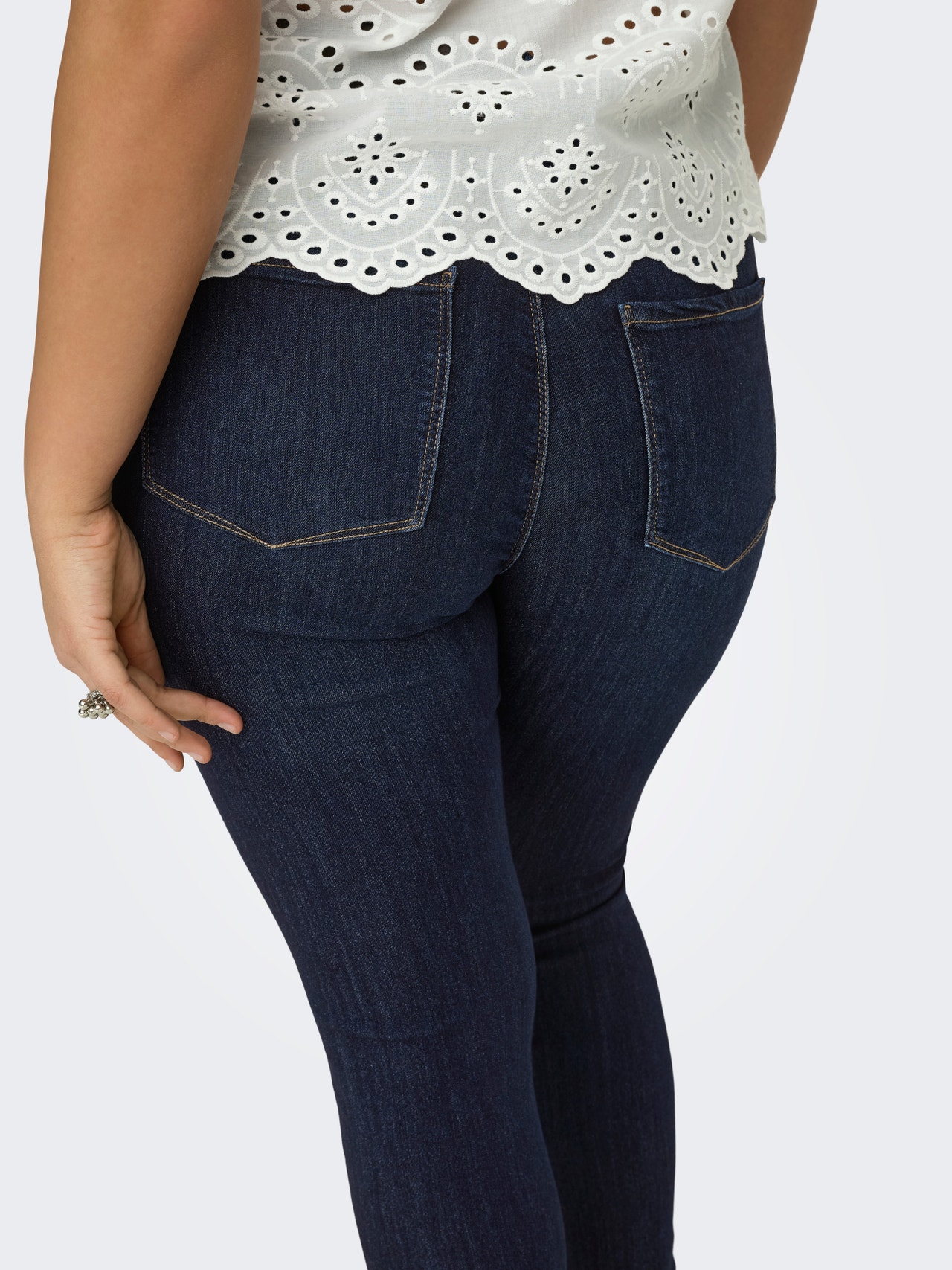 Our plus size skinny fit jeans from ONLY CARMAKOMA are designed to accentuate your curves with a close-fitting shape that offers a confident and flattering look. The style features a comfortable waist height and plenty of stretch, making them perfect for everyday wear. The slim leg creates an elegant silhouette that works for both casual and more refined outfits. A reliable choice for any essential wardrobe.