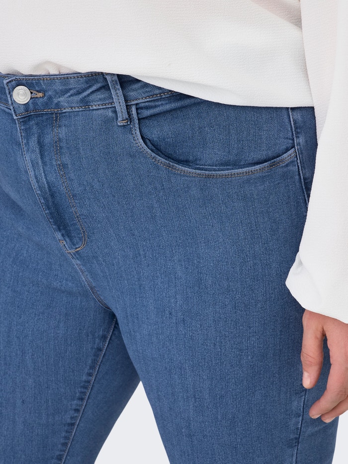 Our plus size skinny fit jeans from ONLY CARMAKOMA are designed to accentuate your curves with a close-fitting shape that offers a confident and flattering look. The style features a comfortable waist height and plenty of stretch, making them perfect for everyday wear. The slim leg creates an elegant silhouette that works for both casual and more refined outfits. A reliable choice for any essential wardrobe.