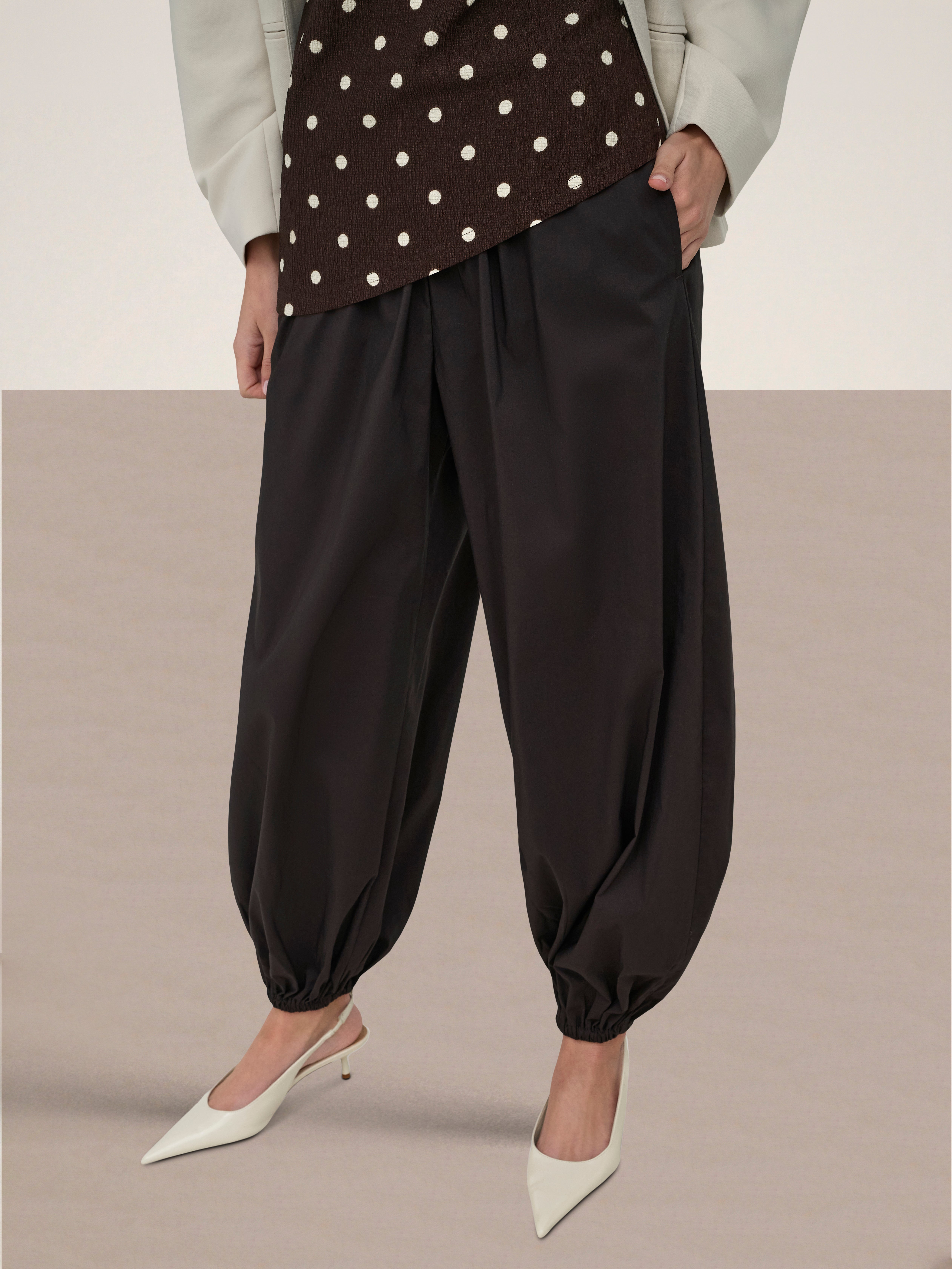 Our model is 174 cm tall and is wearing size S/32