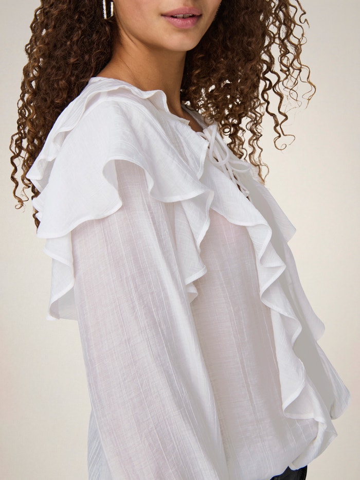 Change your everyday outfit in a second by adding a feminine top for a soft, clean expression.