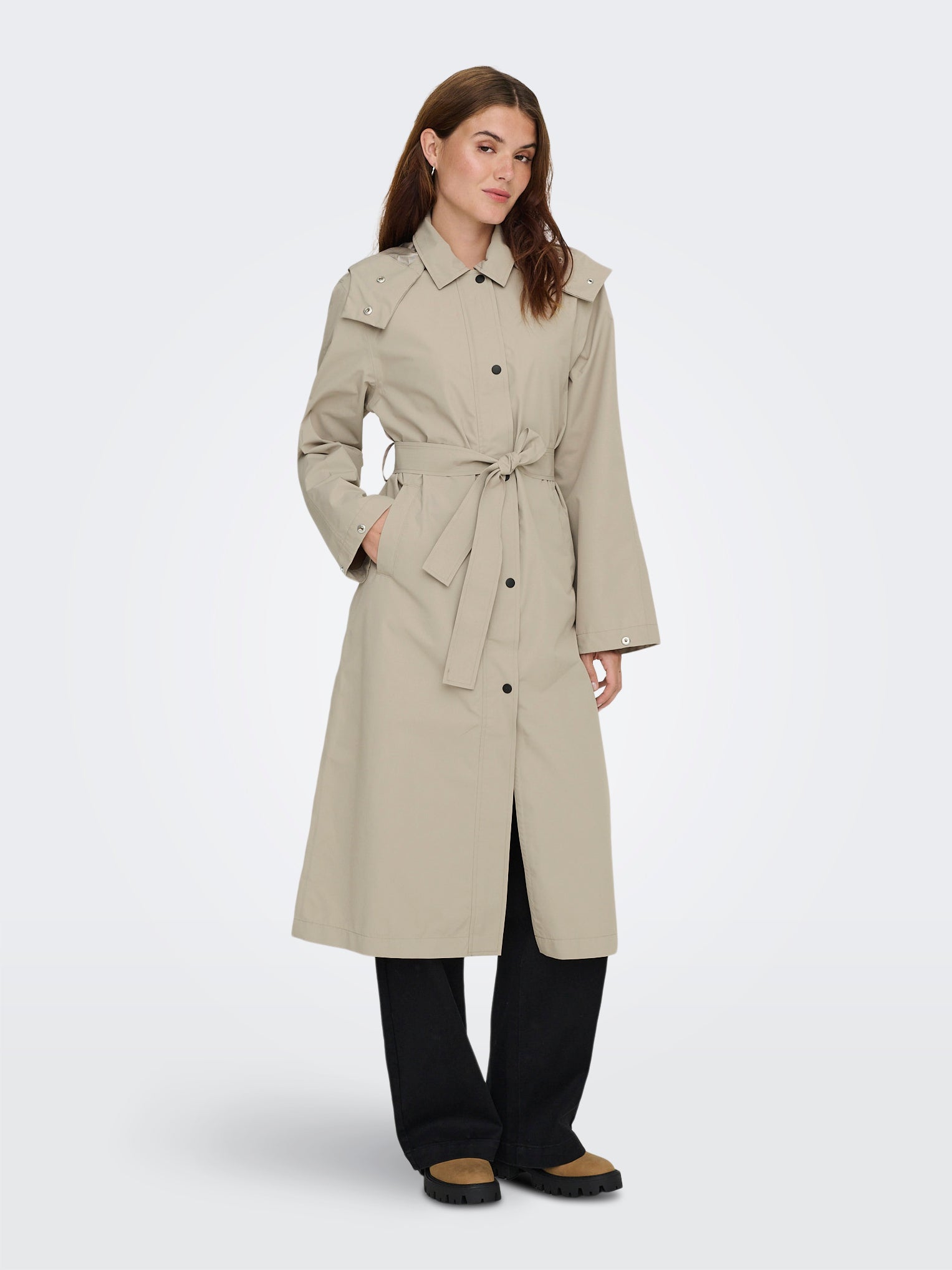 - Extra details : Adjustable waist, Back slit, Belt in waist, Belt included, Belt loops, Detachable hood