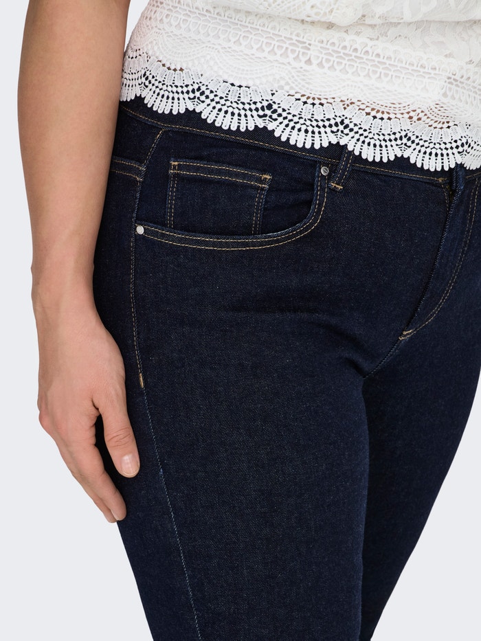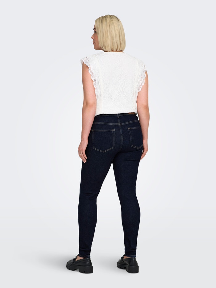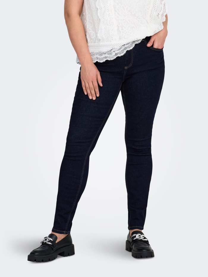 Our plus size skinny fit jeans from ONLY CARMAKOMA are designed to accentuate your curves with a close-fitting shape that offers a confident and flattering look. The style features a comfortable waist height and plenty of stretch, making them perfect for everyday wear. The slim leg creates an elegant silhouette that works for both casual and more refined outfits. A reliable choice for any essential wardrobe.