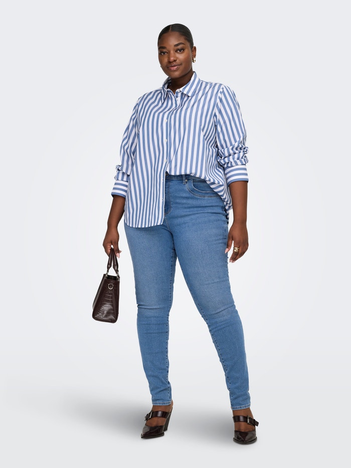 Our plus size skinny fit jeans from ONLY CARMAKOMA are designed to accentuate your curves with a close-fitting shape that offers a confident and flattering look. The style features a comfortable waist height and plenty of stretch, making them perfect for everyday wear. The slim leg creates an elegant silhouette that works for both casual and more refined outfits. A reliable choice for any essential wardrobe.