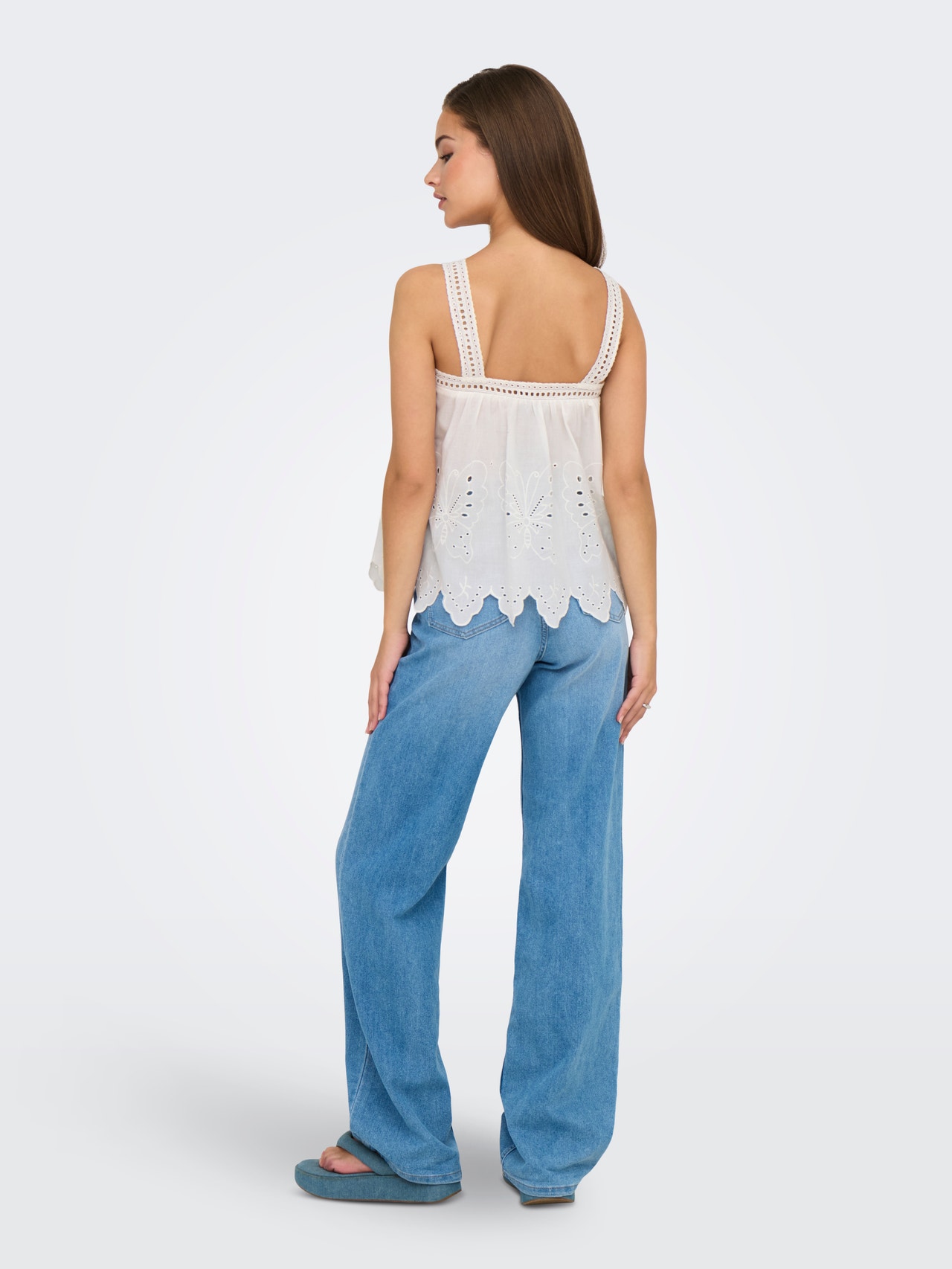 Change your everyday outfit in a second by adding a feminine top for a soft, clean expression.