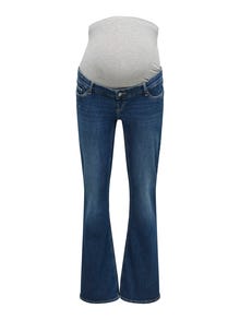 If you're looking for a feminine and flattering look during pregnancy, our maternity jeans in a flared fit are the perfect choice. These jeans feature a classic skinny fit at the top, with a subtle flare below the knee that creates an elegant, leg-lengthening silhouette. The comfortable over-bump design gently supports your belly, and the adjustable waistband ensures the jeans adapt to your body's changes. Style them exactly how you like — throughout your entire pregnancy.