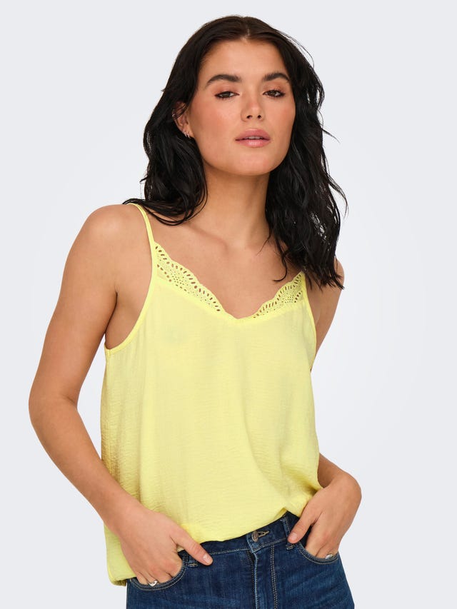 de flores y completa el look con tu par de vaqueros ONLY favorito. Desde cómodas camisetas de algodón, hasta tops de tirantes con encantadores detalles, pasando por sensuales diseños con hombros al descubierto tenemos todas las prendas básicas de arriba que necesitas.