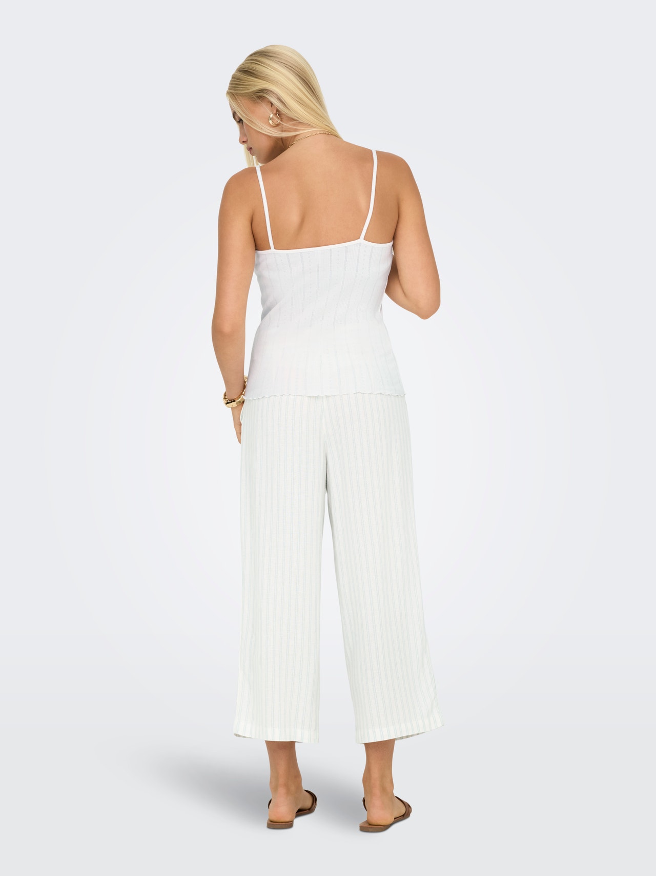 ONLCARO Corte cropped Lino Pantalones de pernera ancha