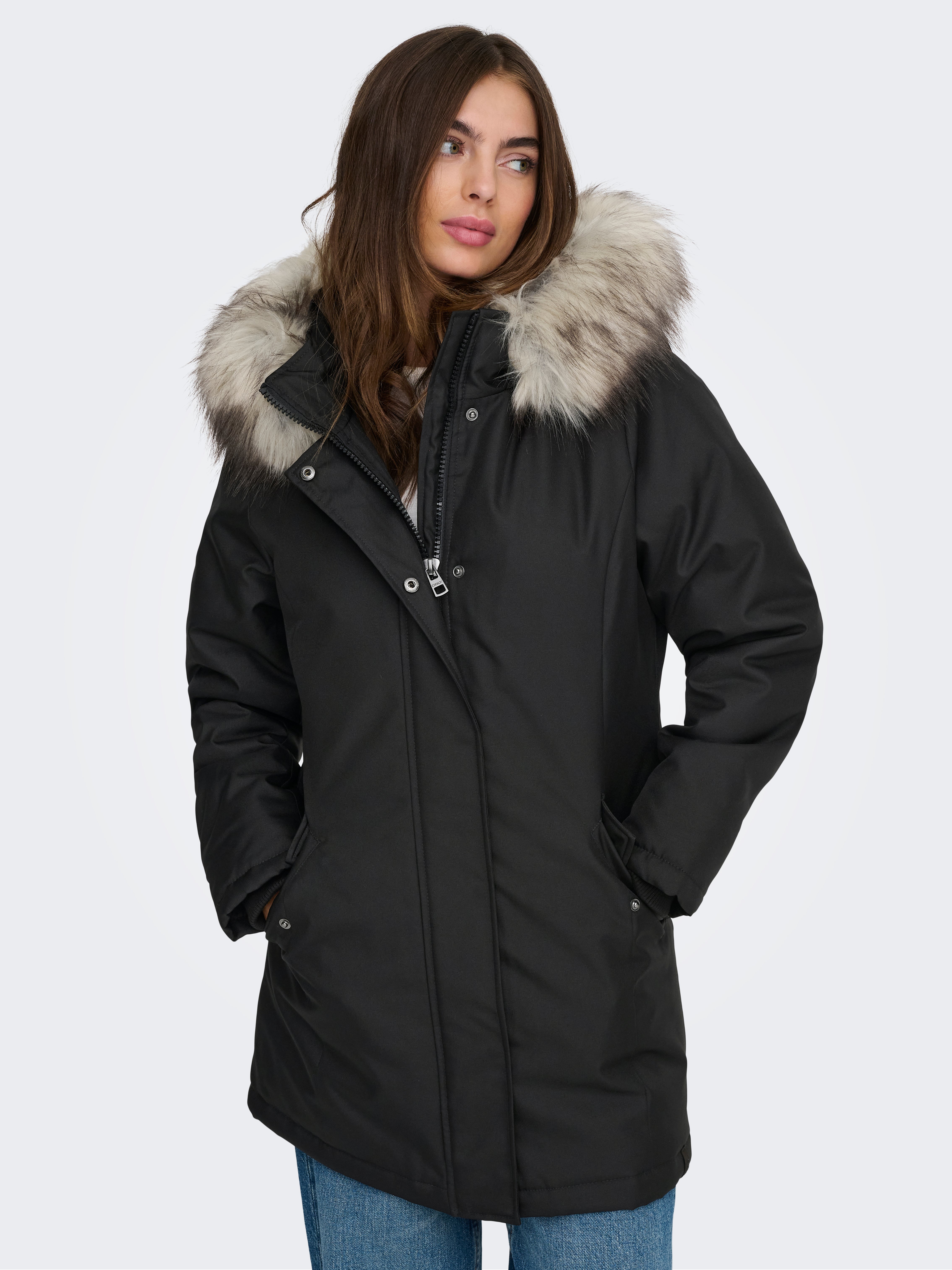 - Cuello : Capucha w. Borde de piel sintética desmontable
