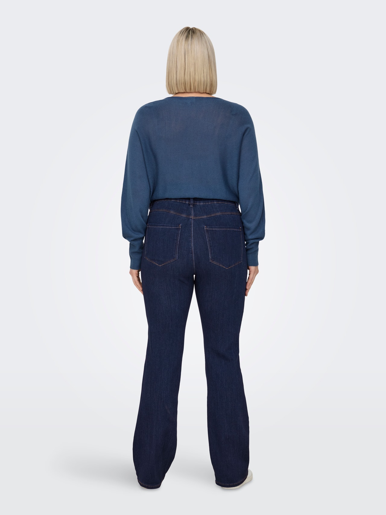 Añade un toque extra a tu atuendo con nuestros vaqueros acampanados de talla grande, que combinan la comodidad con un corte elegante que alarga las piernas. El diseño presenta una altura de cintura favorecedora y una abertura de pierna ligeramente acampanada, creando una silueta hermosa y femenina. El suave denim elástico ofrece libertad de movimiento durante todo el día. Perfecto tanto para looks diarios como para ocasiones más festivas.