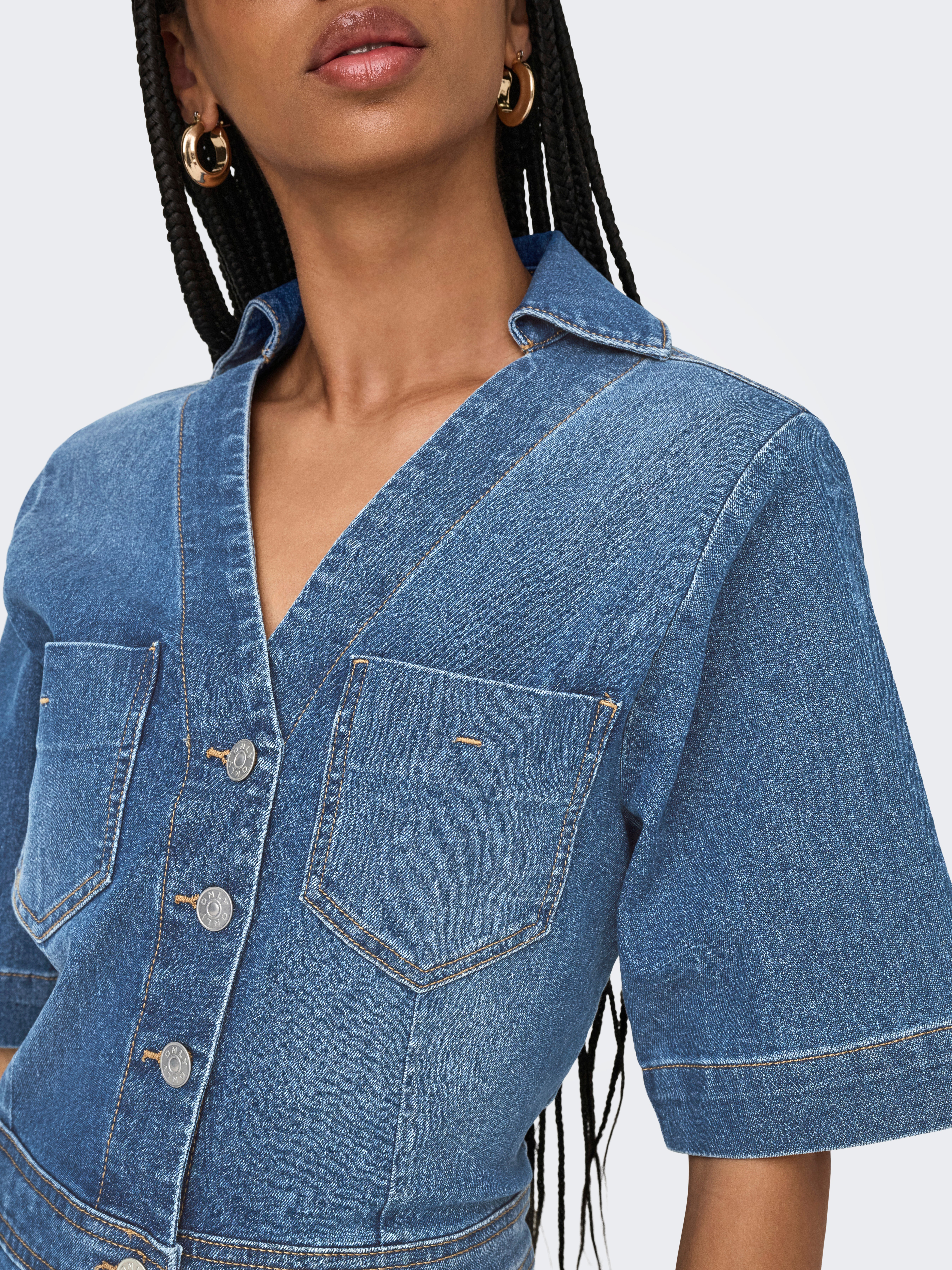 No pases calor con este vestido de tela vaquera que combina perfecto con unas zapatillas deportivas y una chaqueta ligera para el verano, o con medias, botas y una prenda de punto para un impecable estilo invernal.