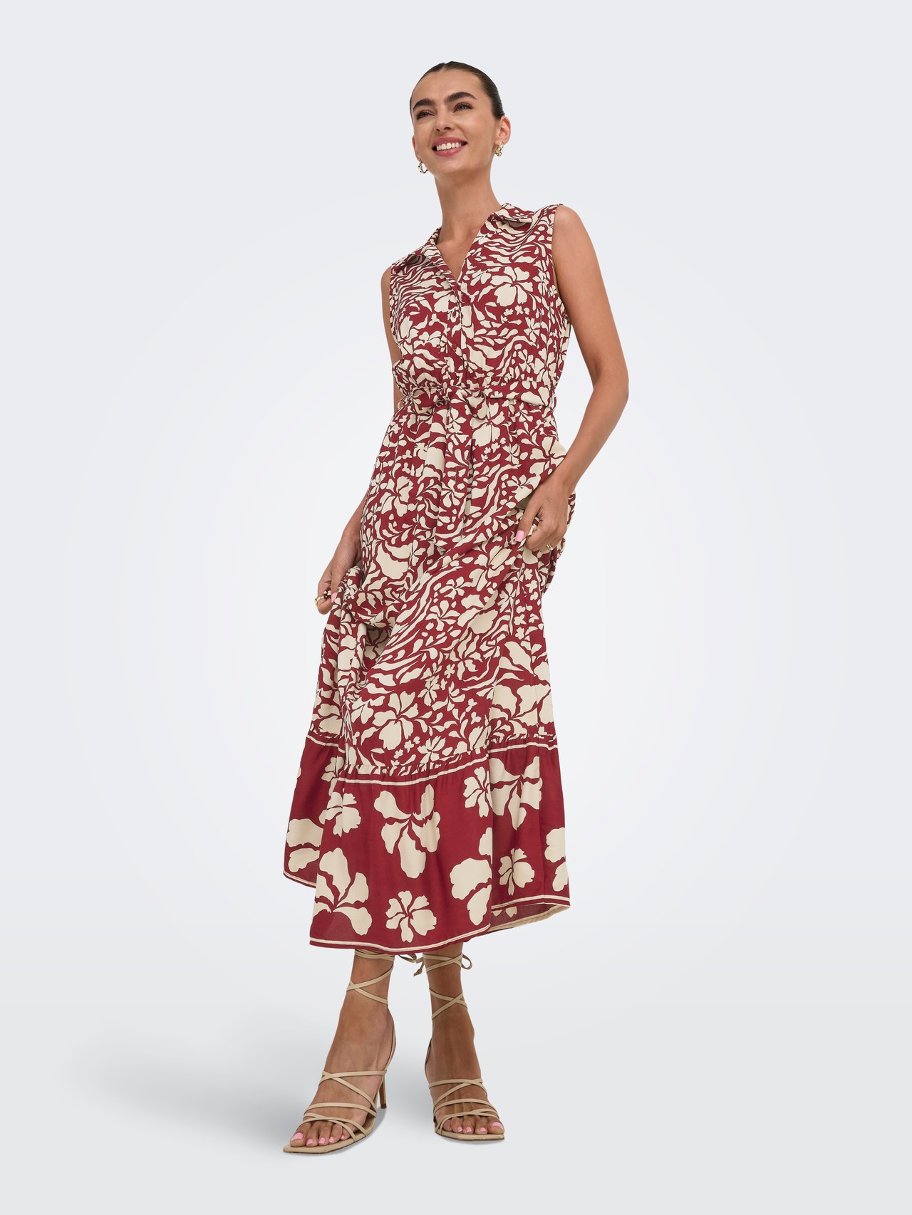 Renueva tu look con un vestido elegante y hazte con un modelo que se adapta a cualquier ocasión y época del año. - Artículo : Vestido - Cuello : Cuello de camisa - Manga : Sin mangas - Cierre : Cierre de botones - Largo/talla : Largo - Detalles : Con cinturón a nivel de la cintura - Corte : Corte regular
