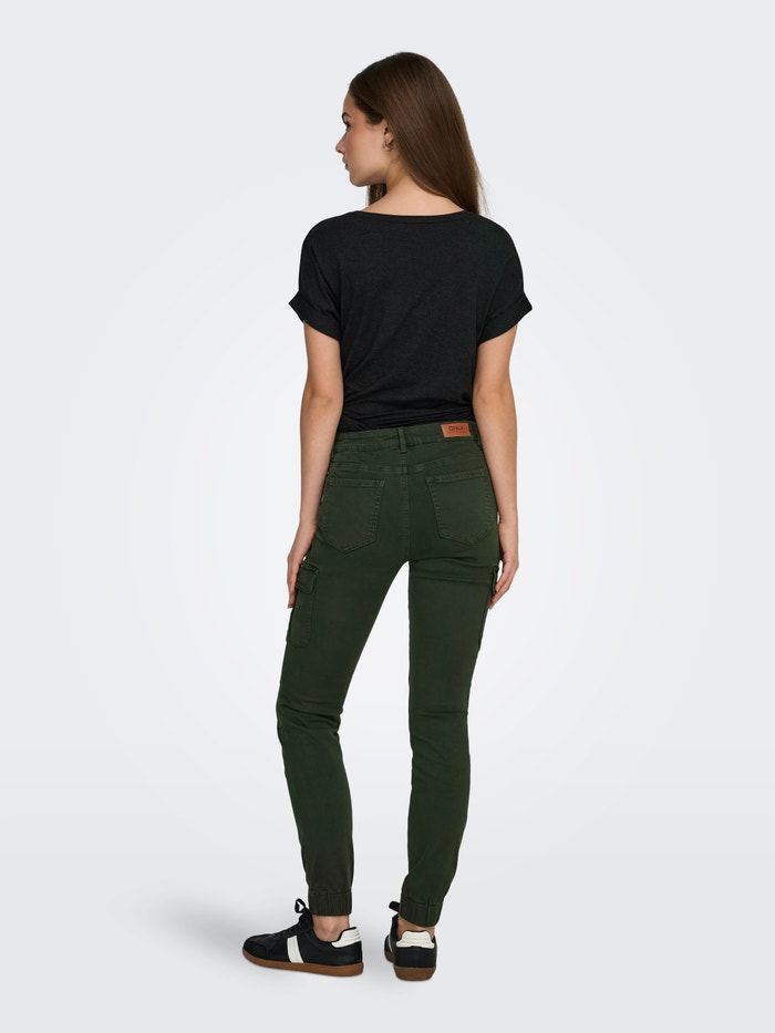 Kitsas lõige Keskmine vöökoht Venivad äärised Püksid