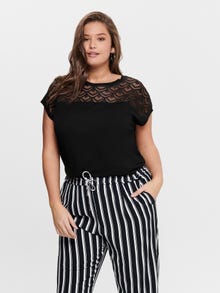 Näe parim välja koolis, tööl ja igapäevaste toimetuste ajal lahedates stiilides, mida on lihtne sinu garderoobi lemmikutega sobitada. Viskoos on pehme ja kergekaaluline materjal, millel on kena langevus ja kaunis siiditaoline pind. AINULT CARMAKOMA on mõeldud kumerustega naistele, kes armastavad moodi ja enesekindlalt oma isiklikku stiili väljendada. Kollektsioonides on kaasaegne teksa, meelitavad istuvused ja stiilid igaks elujuhtumiks – alates teravast ja lahedast kuni naiseliku ja klassikaliseni. Meie pluss-suuruses rõivaste valik on loodud teie kumeruste esiletõstmiseks ja mugavuse pakkumiseks, et iga pluss-suuruses naine saaks tunda end oma välimuses ilusa ja enesekindlalt. - Toote tüüp : Topp - Kaelaosa : Ümmargune kaelus - Varrukas : Lühikesed varrukad - Täiendav info : Pitsdetail - Lõige : Tavapärane lõige