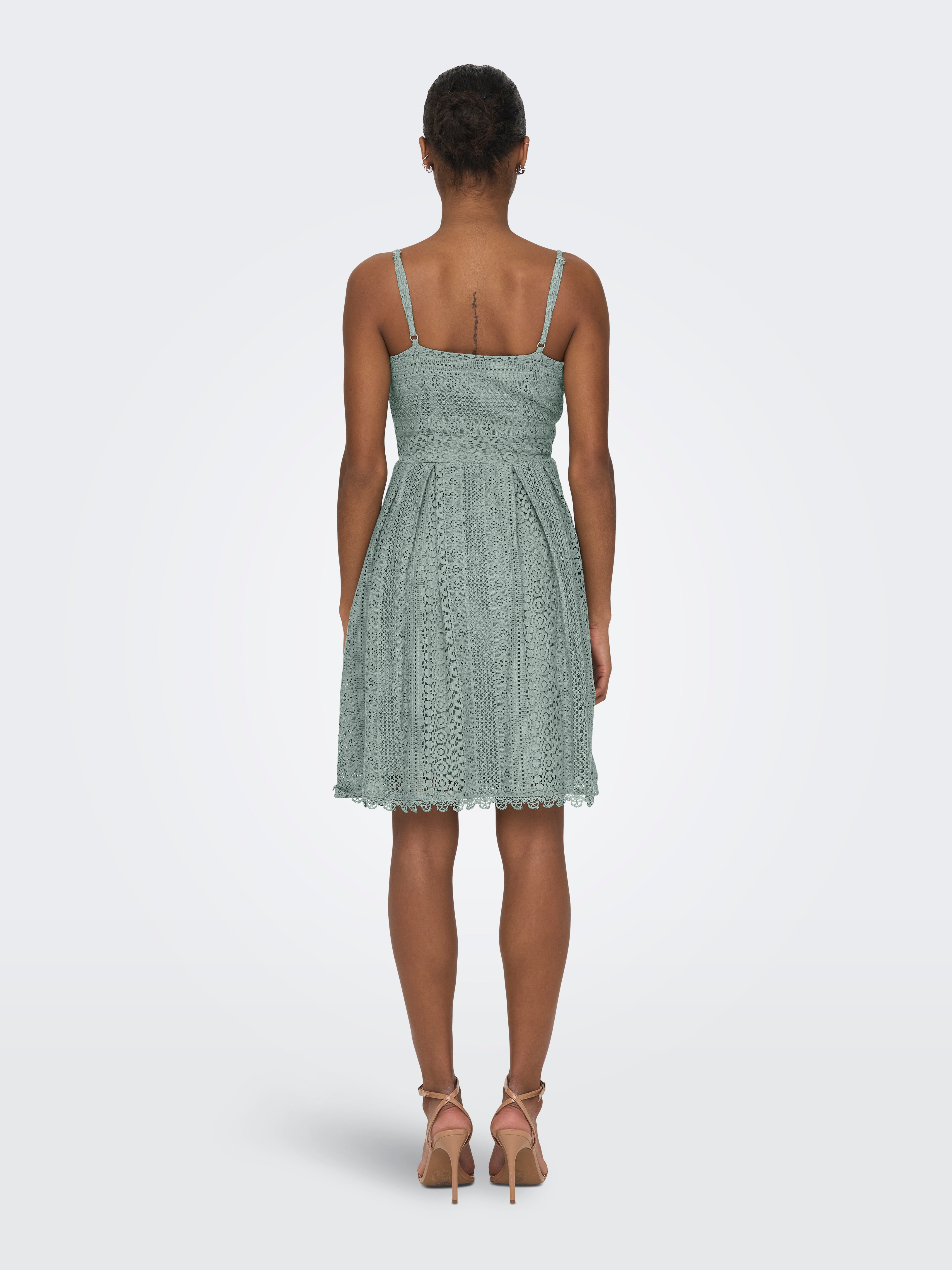 Tavapärane lõige V-kaelus Kohandatavad rihmad Lühike kleit