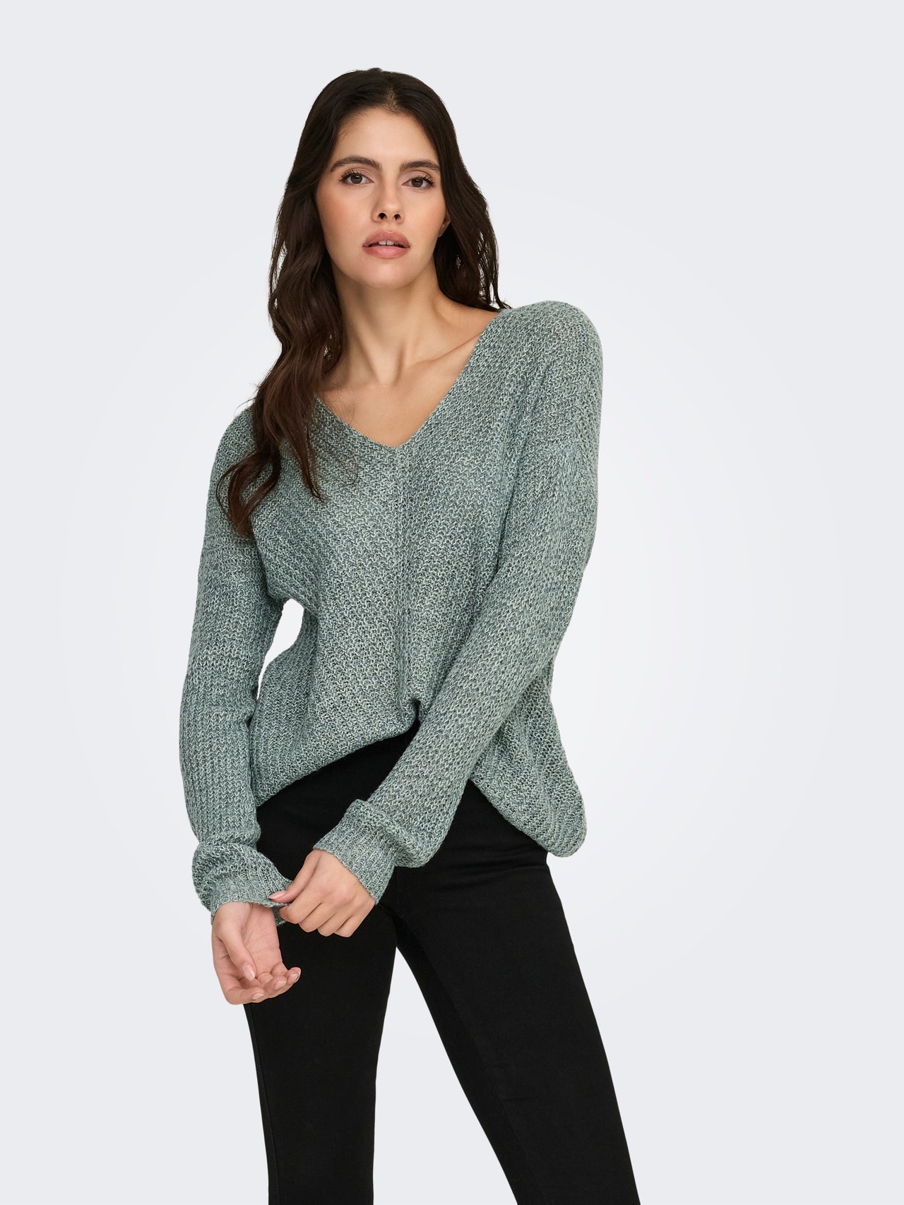 Kootud kangast lõige V-kaelus Soonikuga mansetid Langetatud õlaosa Pullover