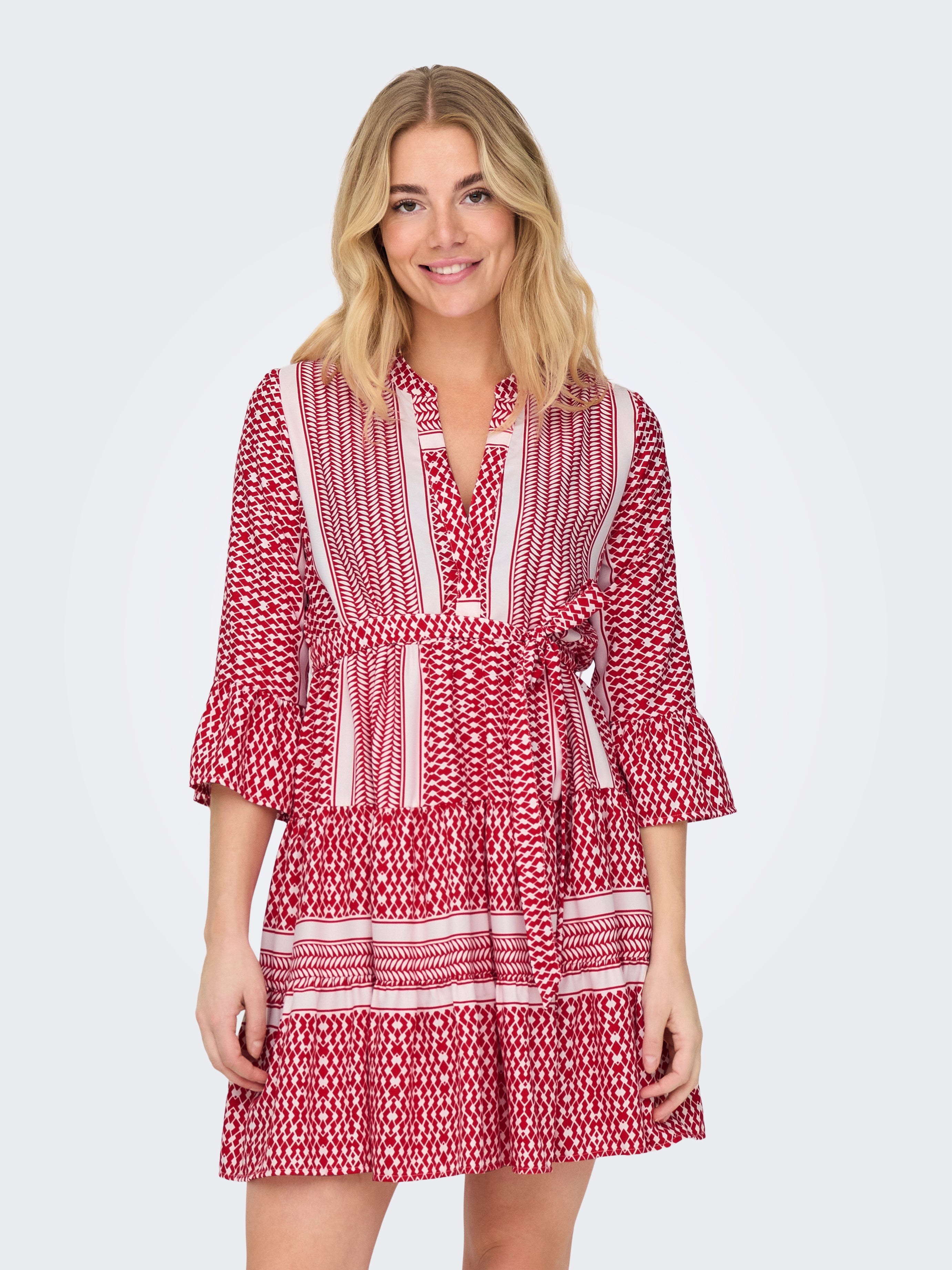 Tavapärane lõige V-kaelus Laiad mansetid Lühike kleit