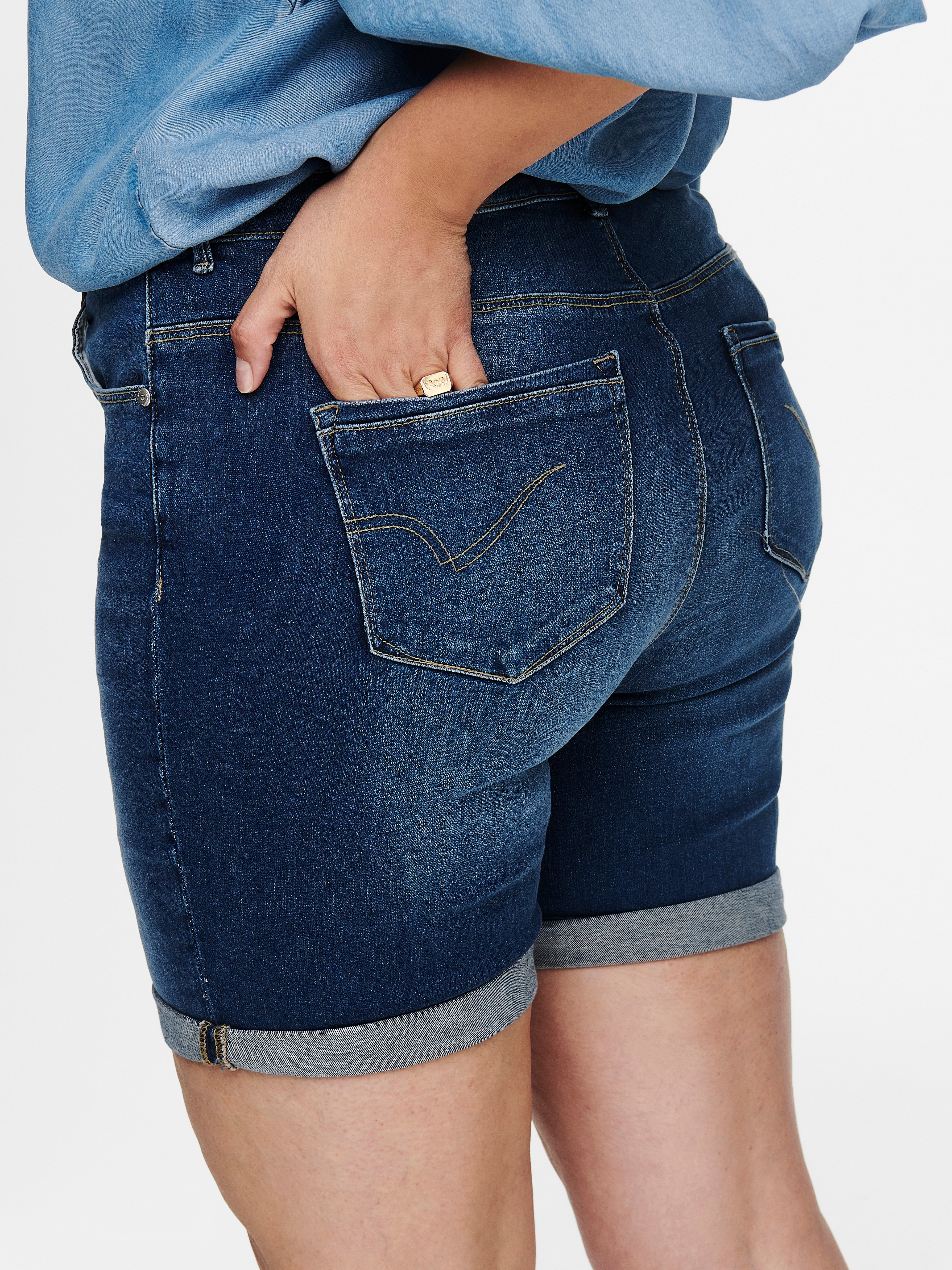 Liibuv lõige Kõrge vöökoht Üles volditud äärised Lühikesed püksid