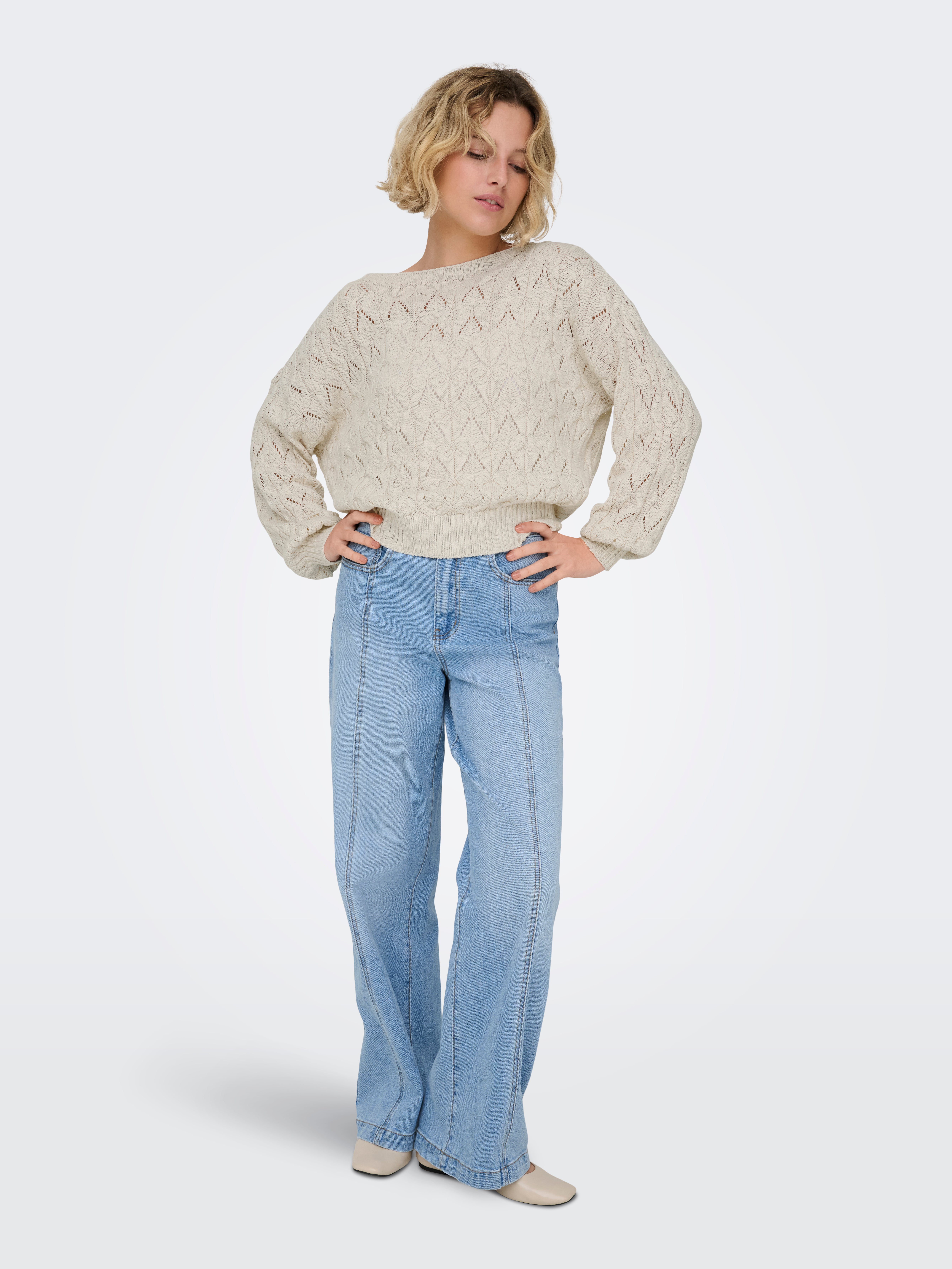 Tavapärane lõige Sirge kaelus Soonikuga mansetid Langetatud õlaosa Pullover