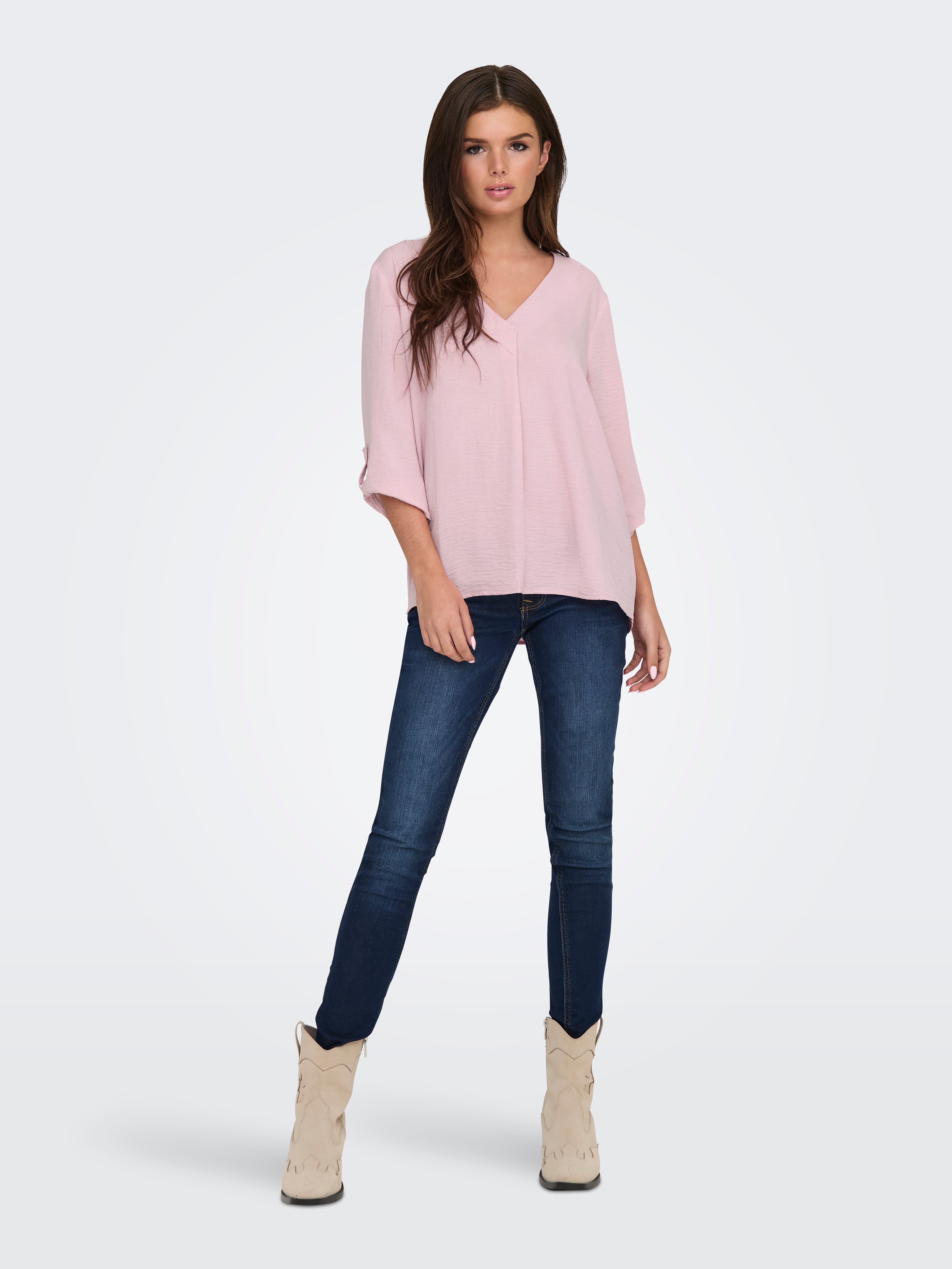 Ruumikas lõige V-kaelus Üles volditud mansetid Volüümikad varrukad Top