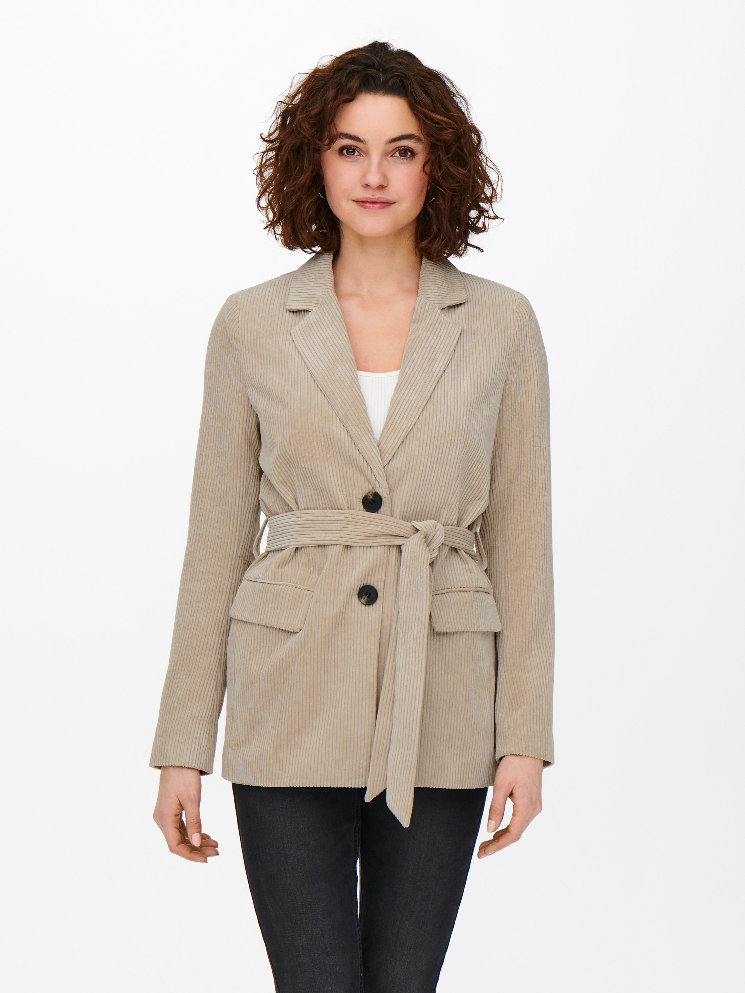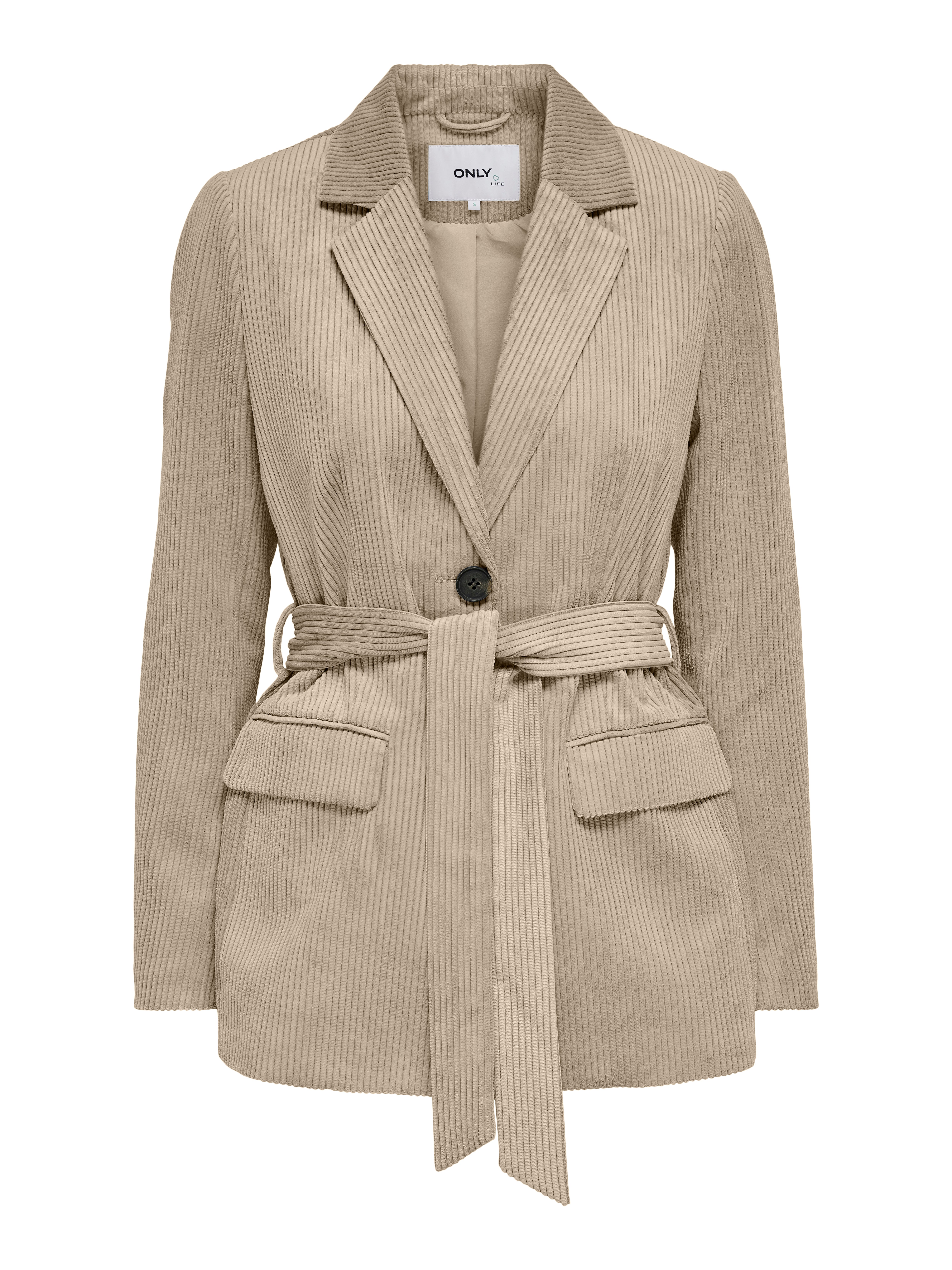 LDS L/S WVN LONG CORDUROY COAT - LAPEL - 1X VISIBLE HORN BUTTON CF CLOSURE - 2X LOWER PATCH POCKETS - FULLY LINED