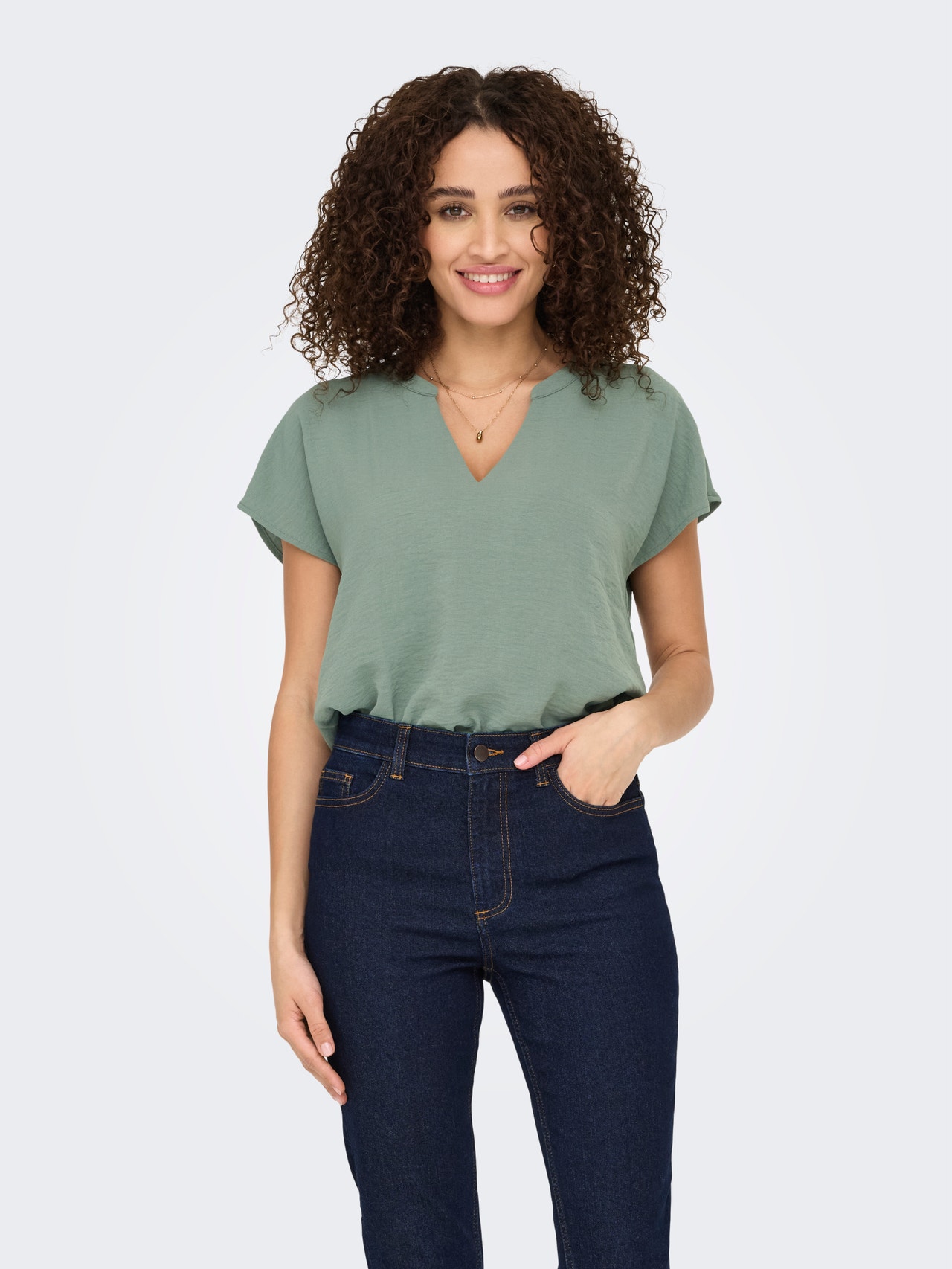 Tavapärane lõige V-kaelus Volüümikad varrukad Top
