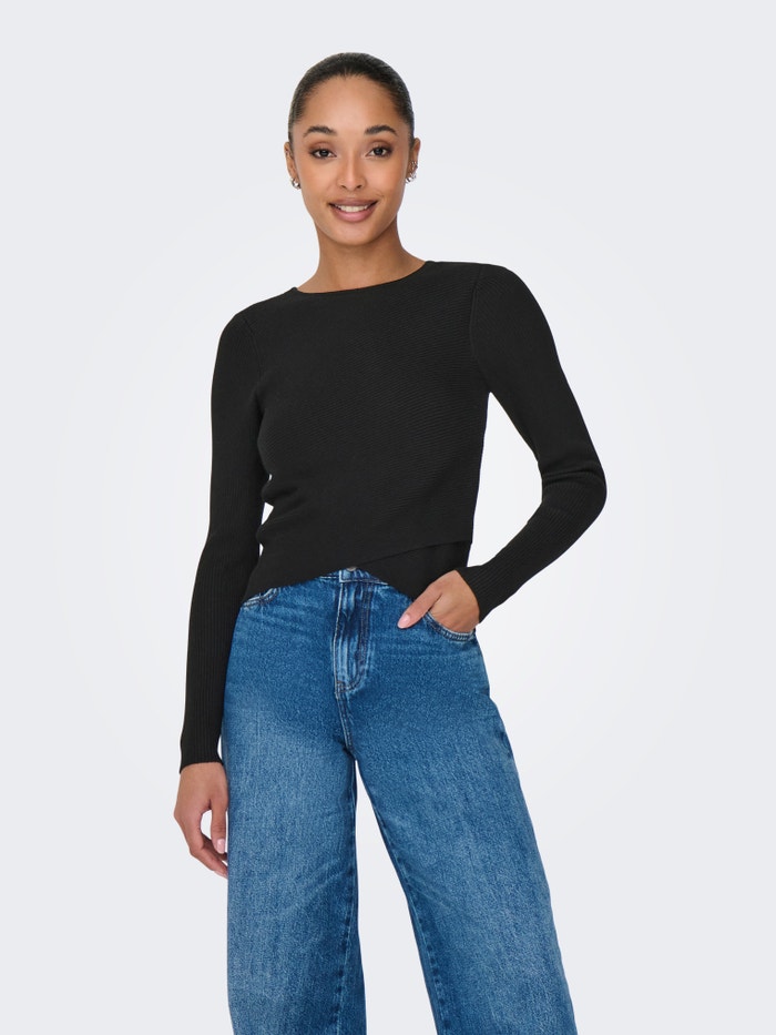 Kootud kangast lõige Ümmargune kaelus Pullover