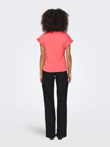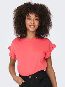 Juhuslik ja lihtne kanda kogu päeva. - Toote tüüp : Topp - Kaelaosa : Ümmargune kaelus - Varrukas : Lühikesed varrukad - Täiendav info : Frill trimmimine - Lõige : Tavapärane lõige - Manuse võrdlusandmed : Puuvill