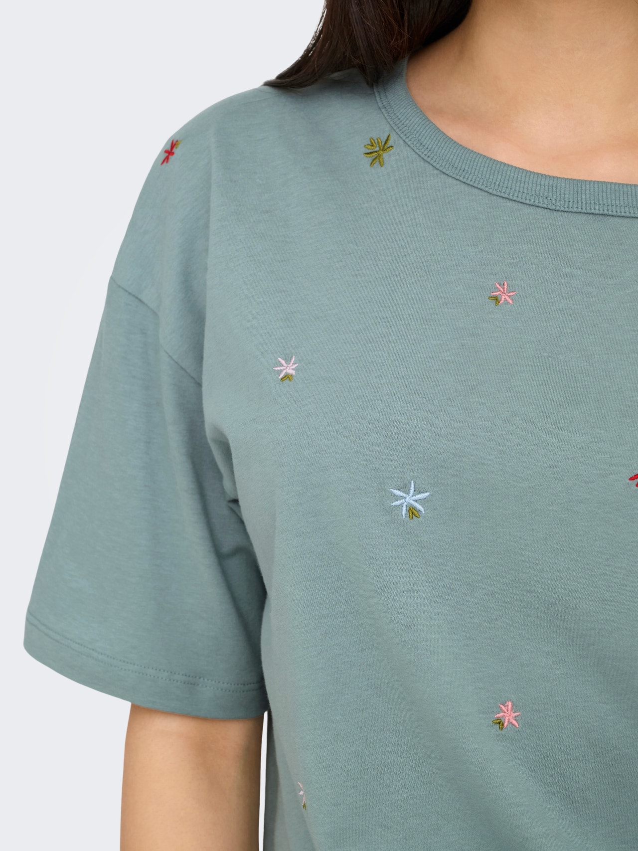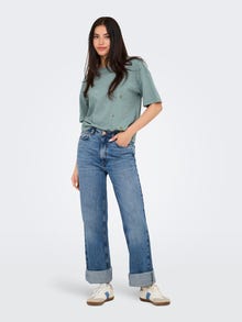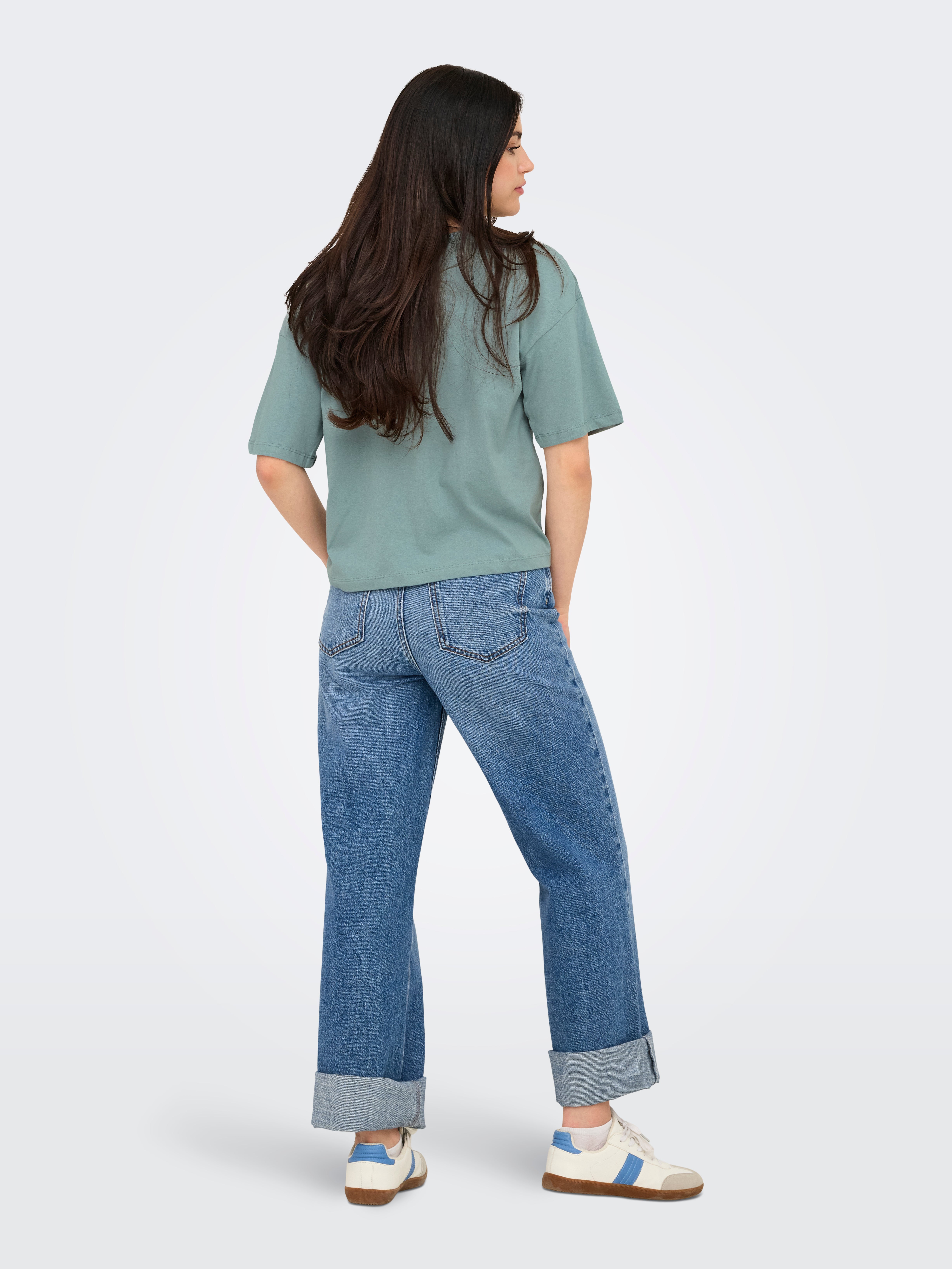 Kõrge vöökohaga lai lõige Ümmargune kaelus Langetatud õlaosa T-särk