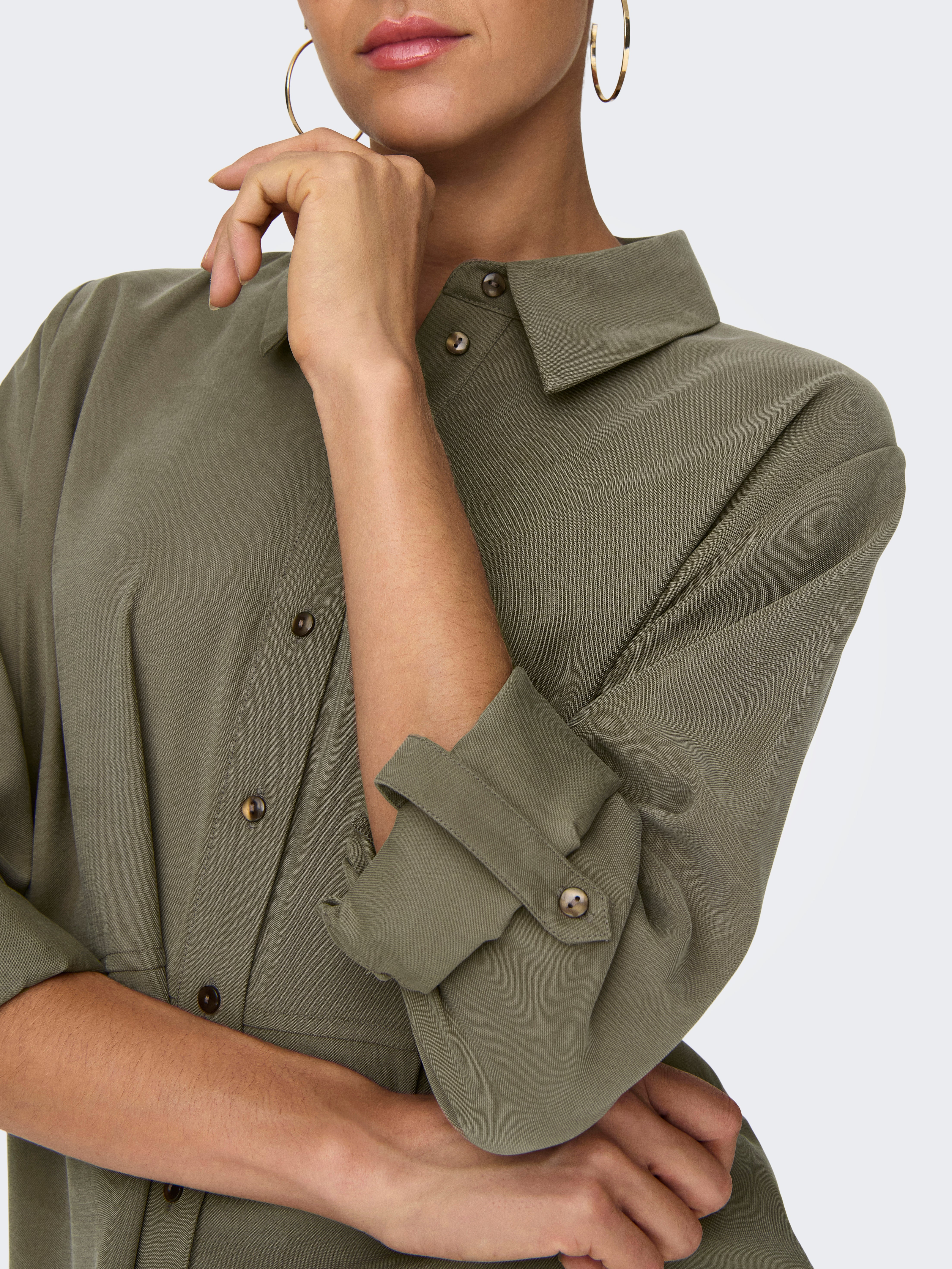 Tavapärane lõige Särgikrae Üles volditud mansetid Volüümikad varrukad Särk
