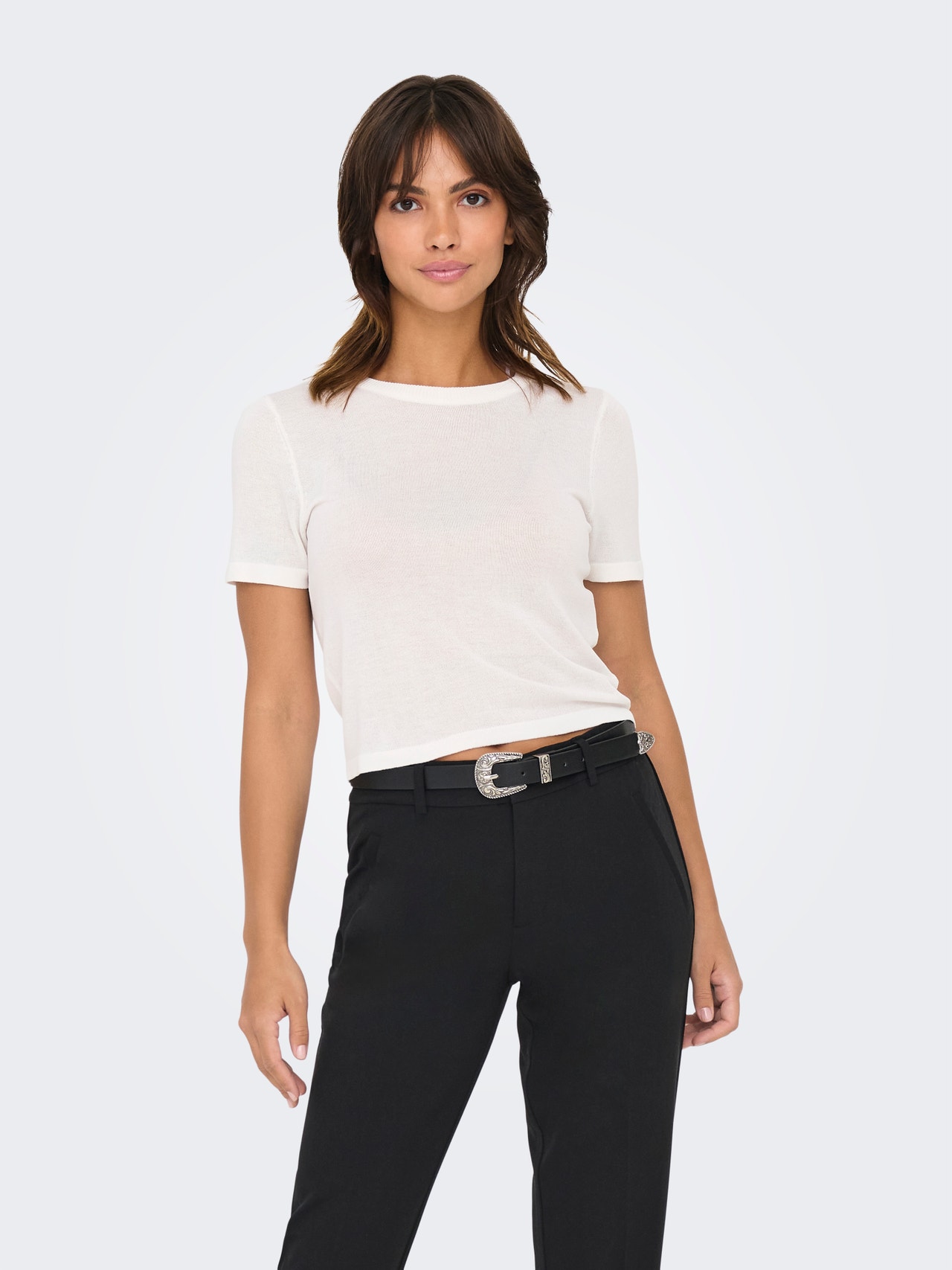 Tavapärane lõige Ümmargune kaelus Soonikuga mansetid Kootud topp