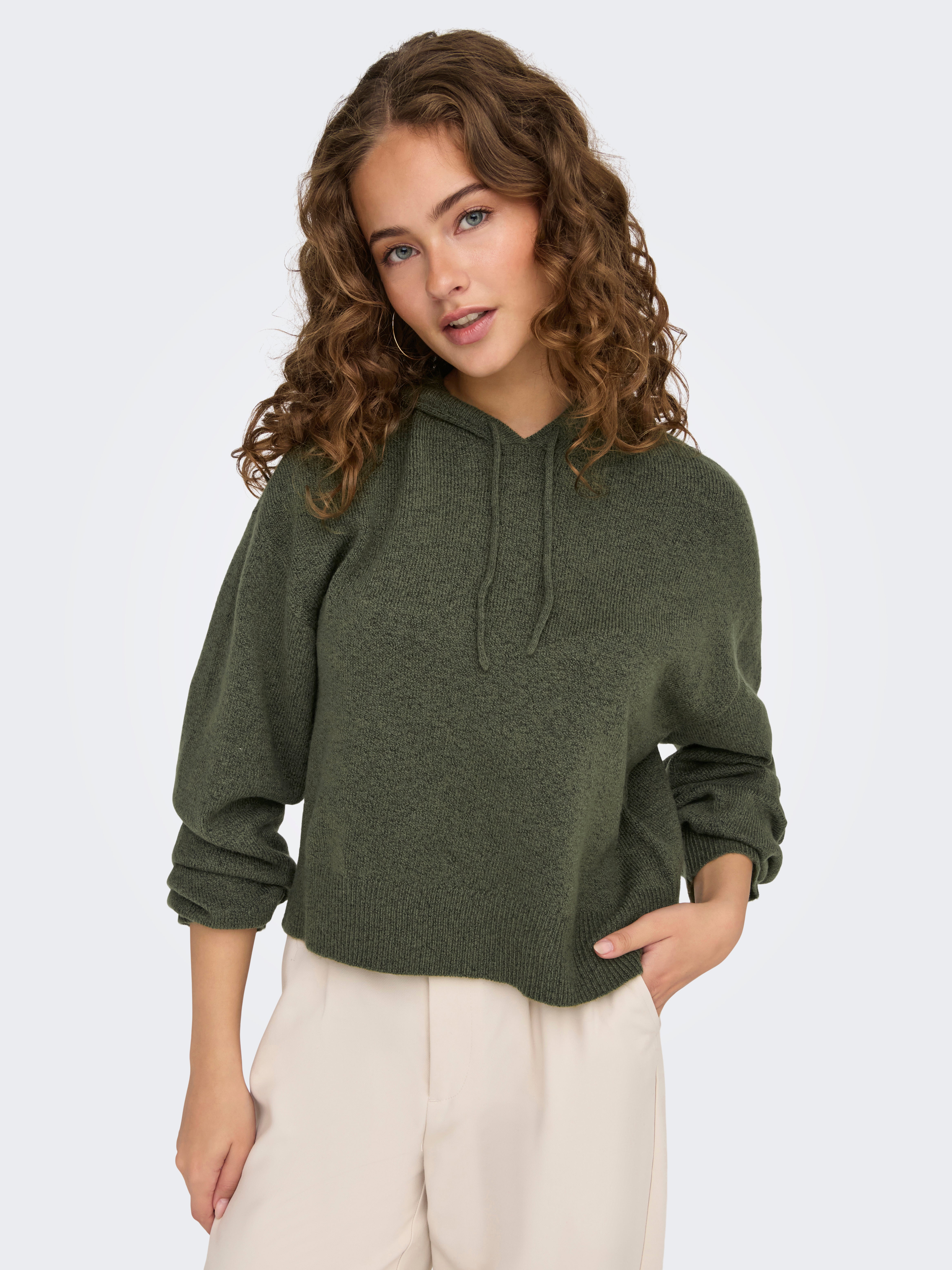 Kootud kangast lõige Kapuuts Soonikuga mansetid Langetatud õlaosa Pullover